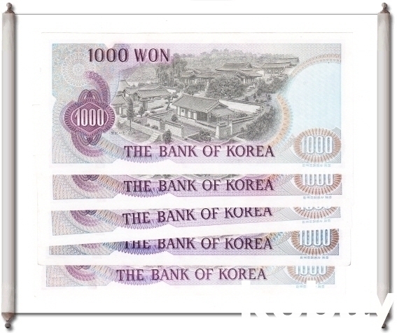 한국은행 1차 1,000원권 5장 이나 미사용~ 준미사용입니다.