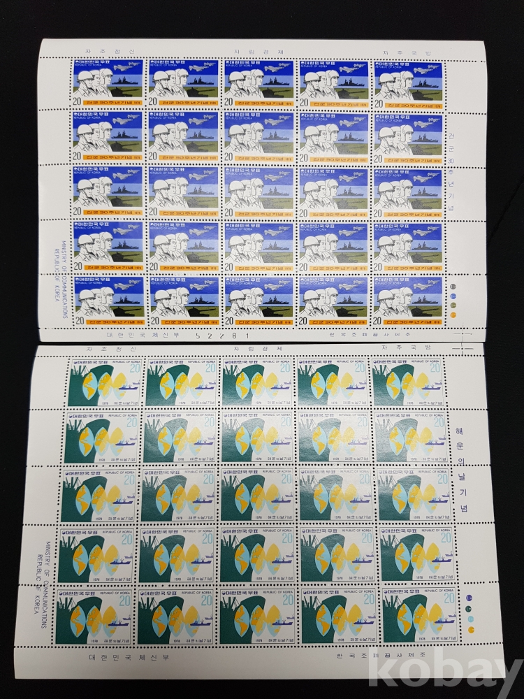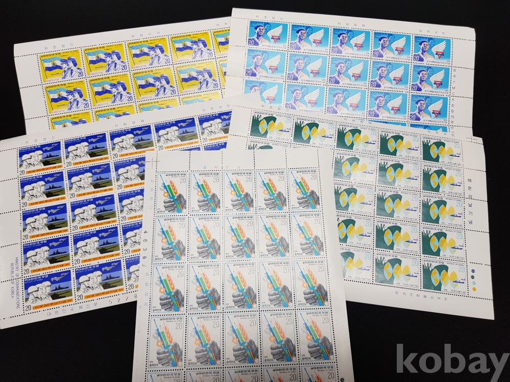 [우표전지모음展] 미사용 1970년대이후 기념우표 전지 5종 모음 [ 우표 / 우취자료 / 전지 / 한국우표 ] #57(전)-0312 #CO #HH