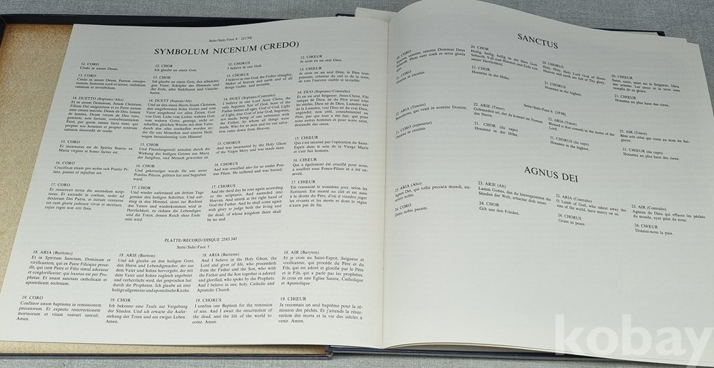 주요 독창진: 군둘라 야노비츠(소프라노), 크리스타 루트비히(알토), 페터 슈라이어(테너), 로버트 컨스(바리톤), 칼 리더부슈(베이스)
