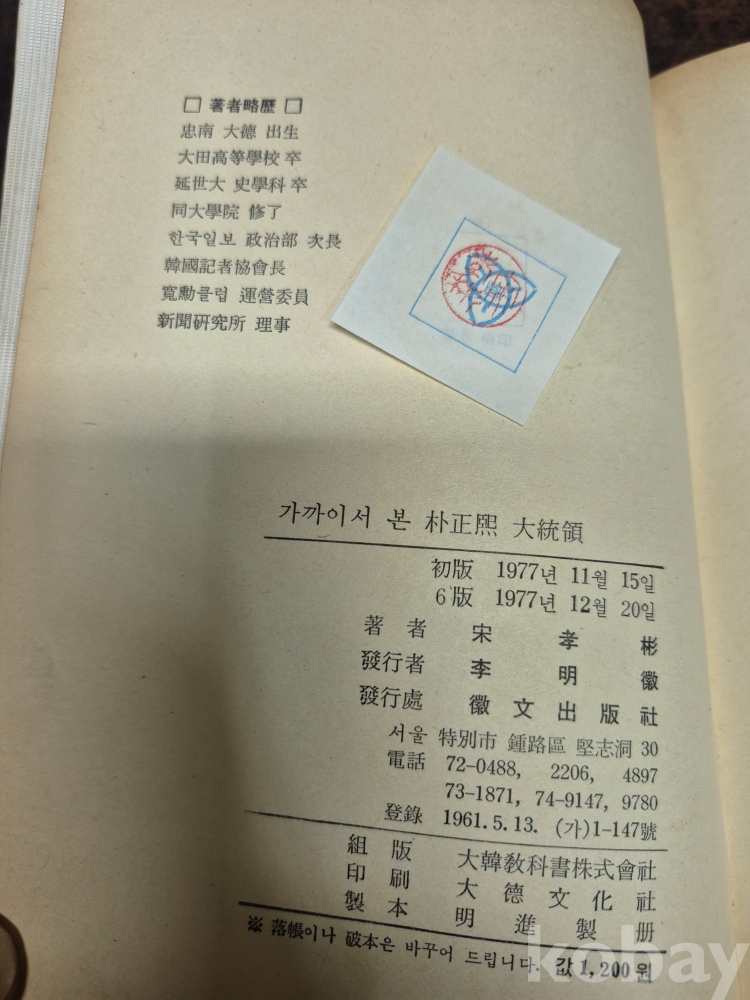 1977년 12월20 일 6판 가까이서 본 박정희 대통령 세로글씨 13*19*2.5