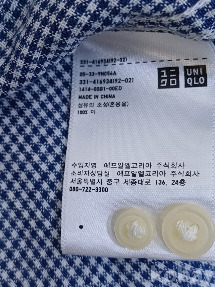 | 물품 크기 | 가슴단면52 총장75 |