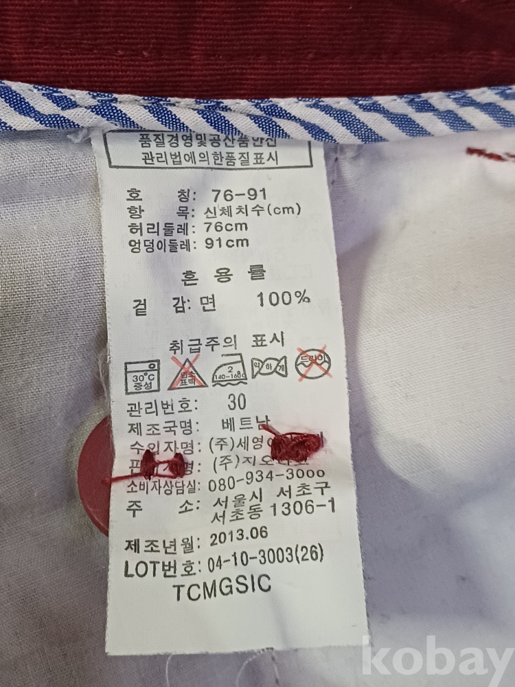 | 물품 크기 | 허리단면40cm 총장53cm |