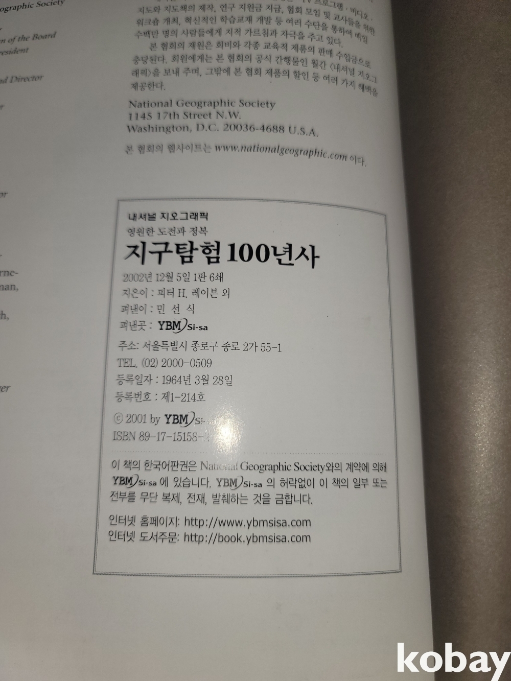 2002년 제작 좋은 재질의 종이로 만들어진 크고 두꺼운 내셔널 지오그래픽 지구탐험 100년사입니다.