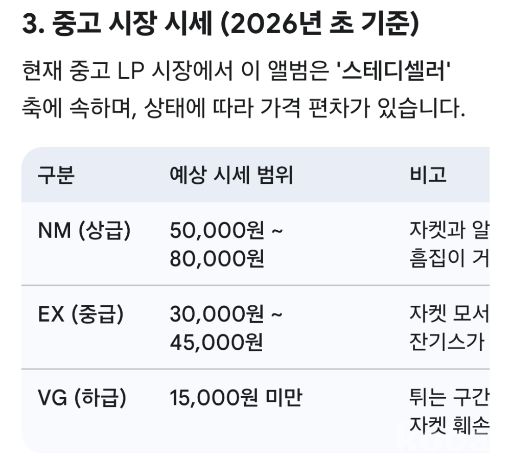 NM : 개봉했으나 미사용급, 스크래치 없음 발매정보 초반 가사지여부