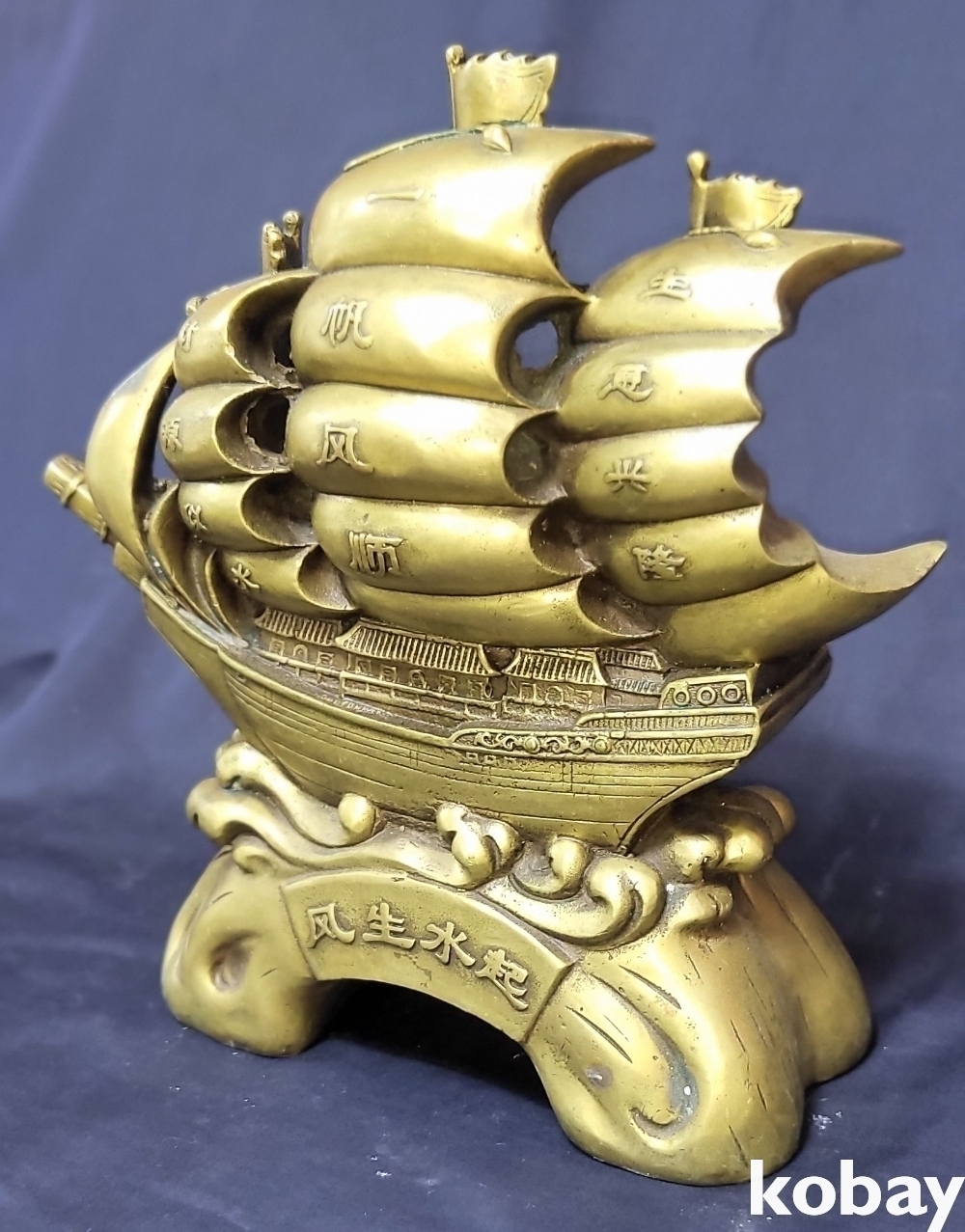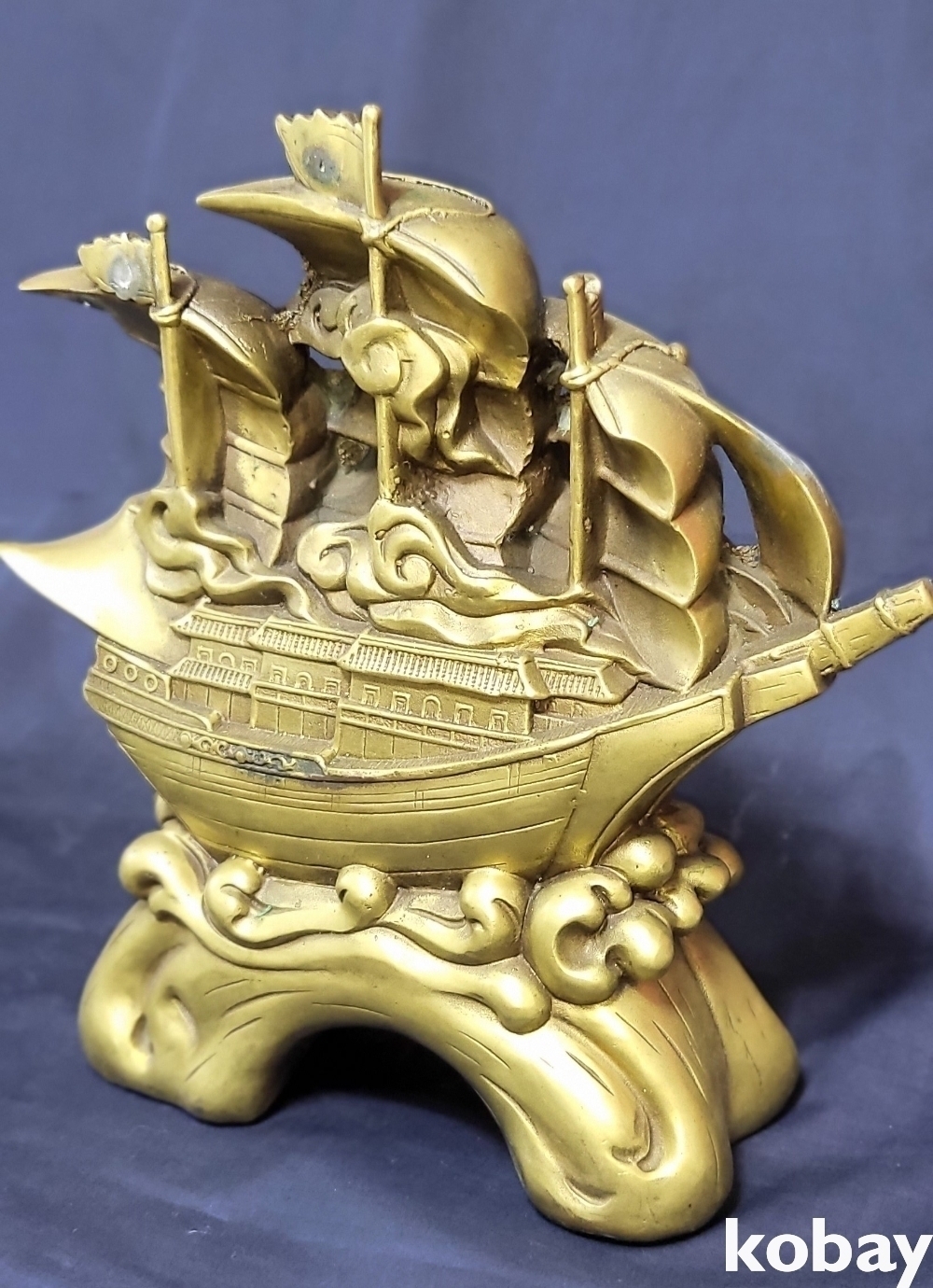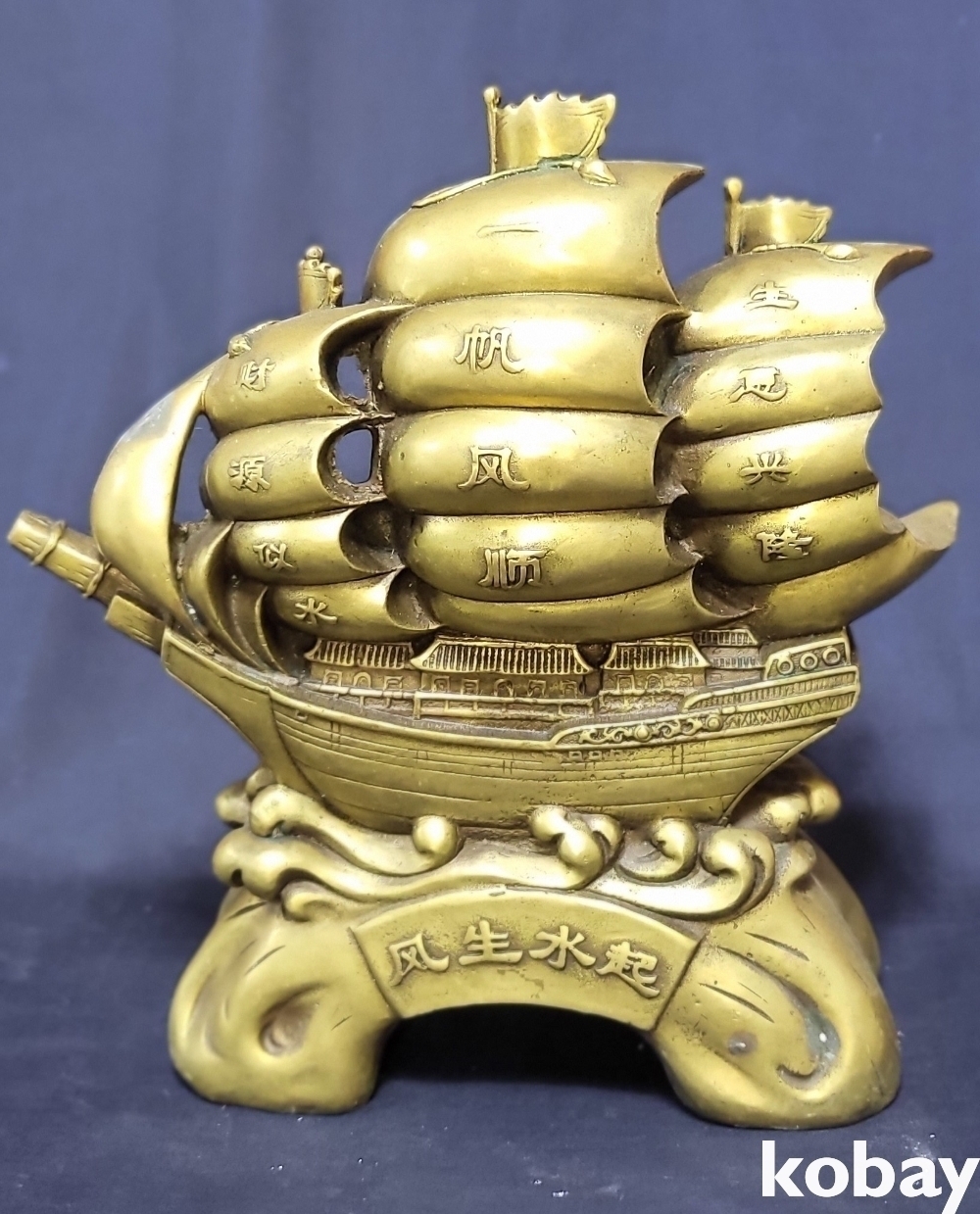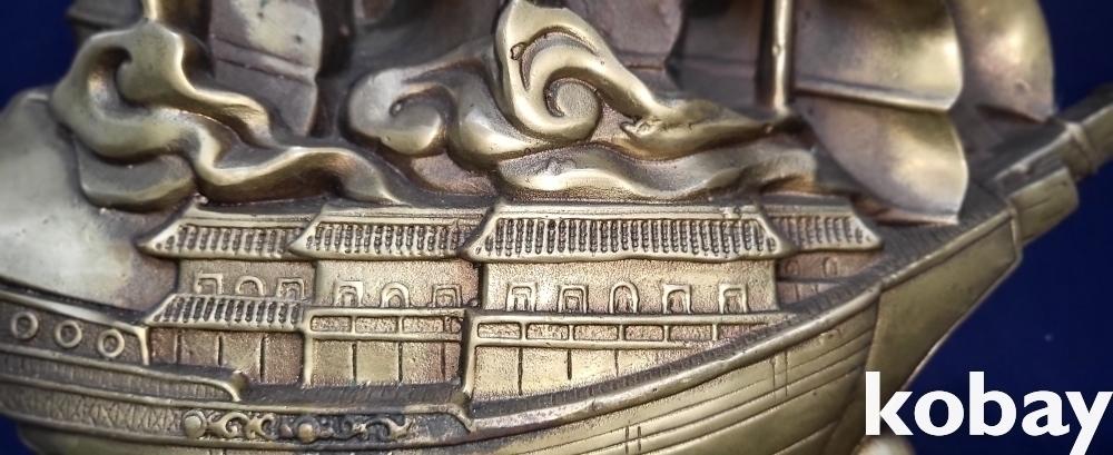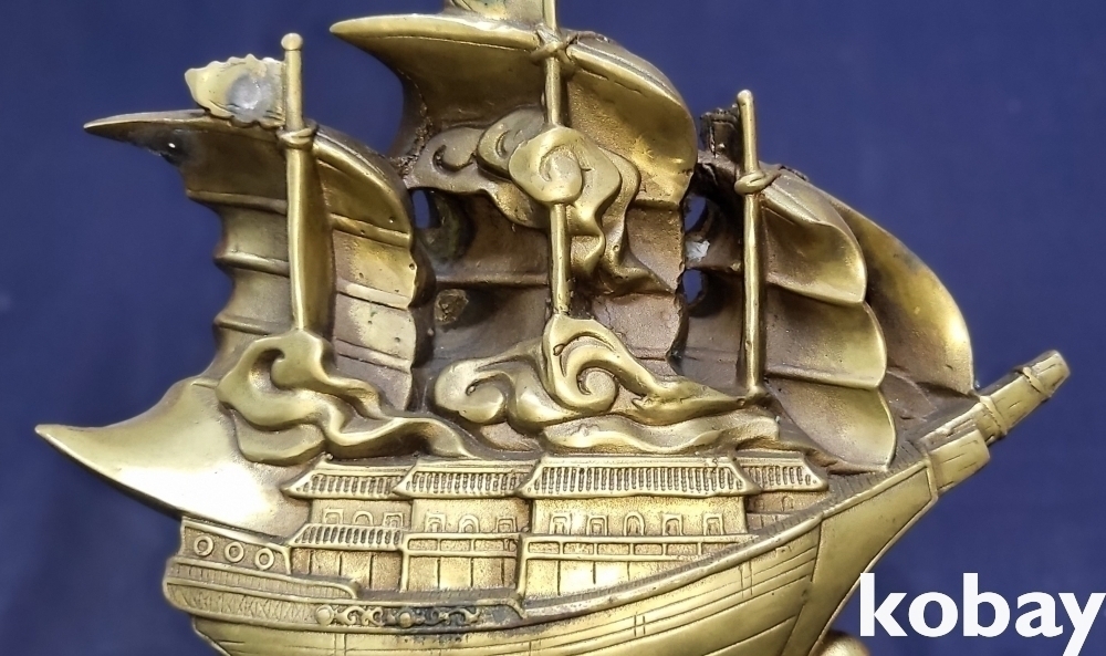 청동으로 완성된 기수생강(起水生岡) 범선입니다,
