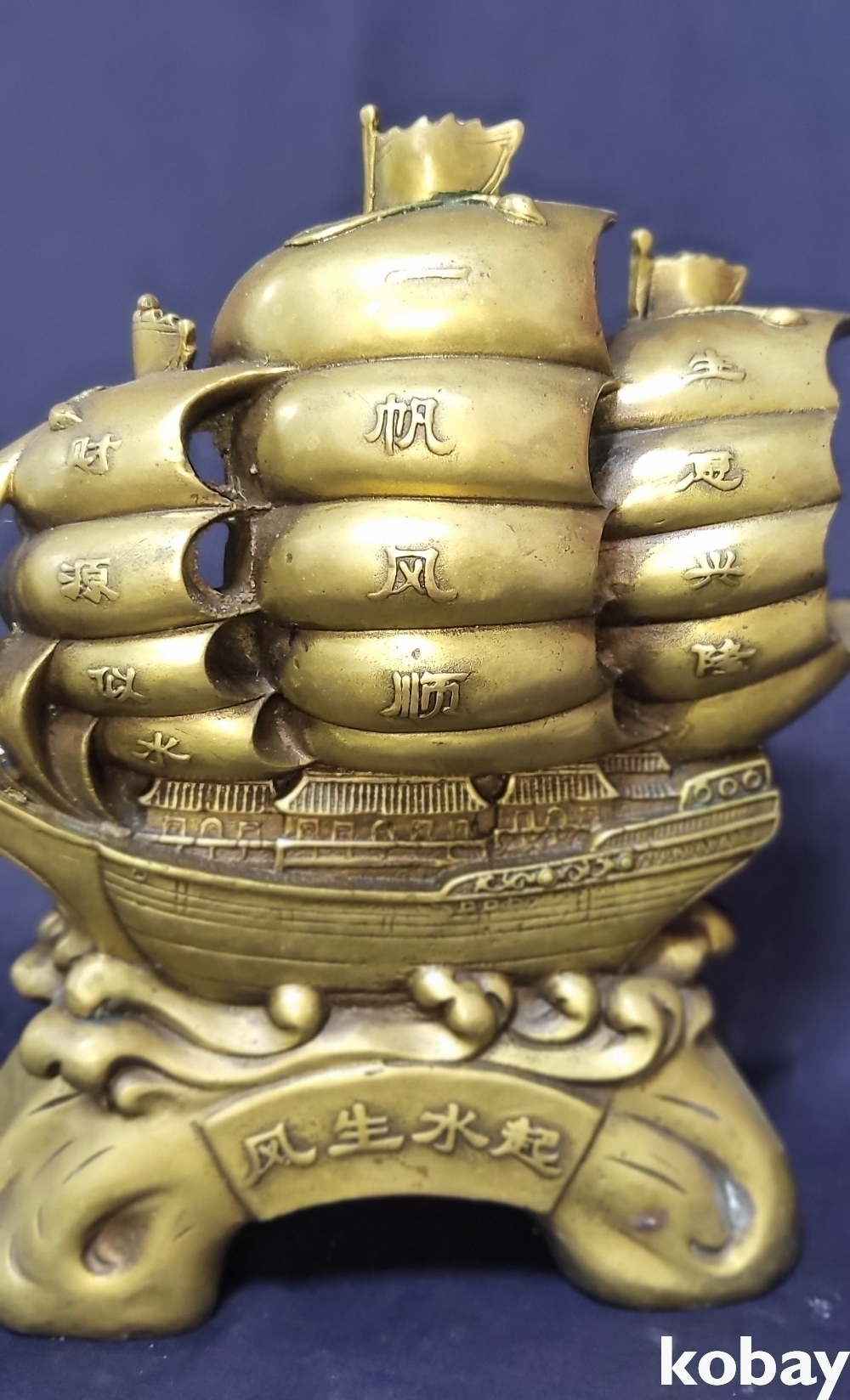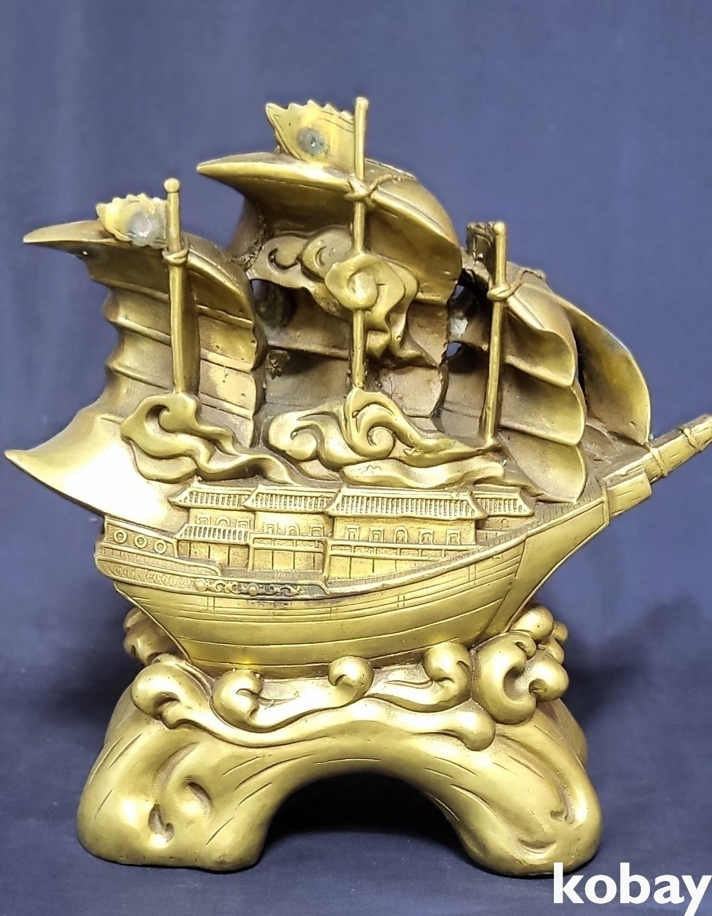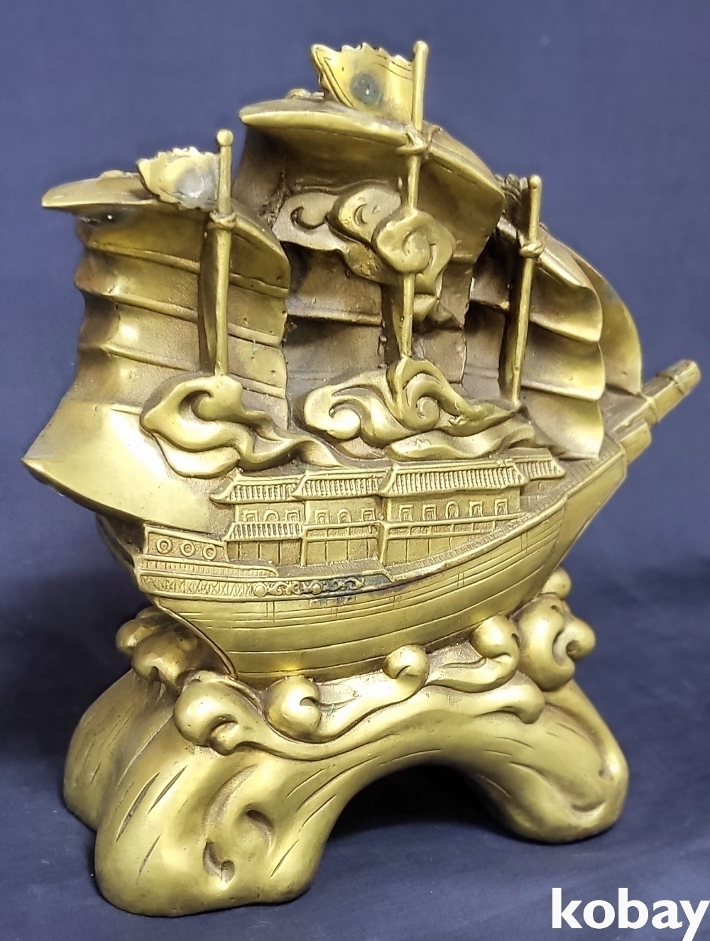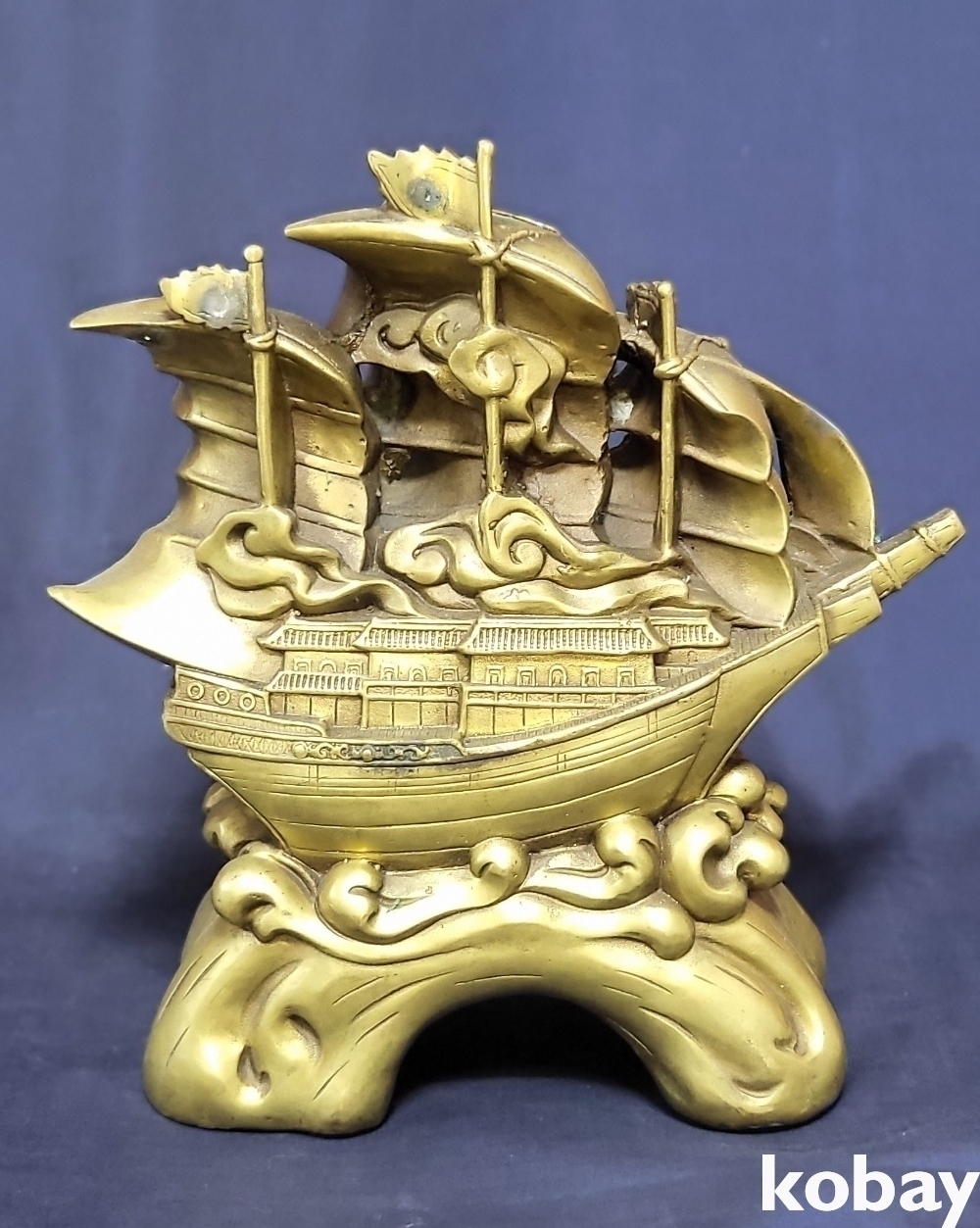 청동으로 완성된 기수생강(起水生岡) 범선입니다,