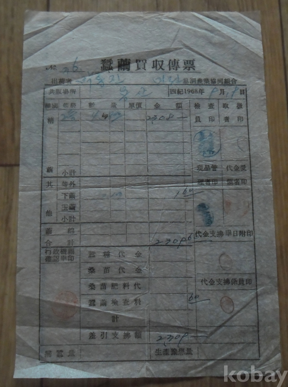 1968년 영동군 누에매수전표