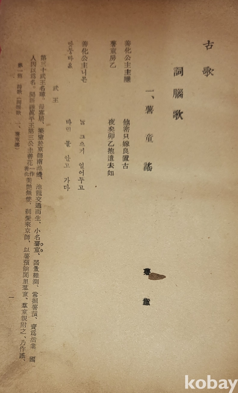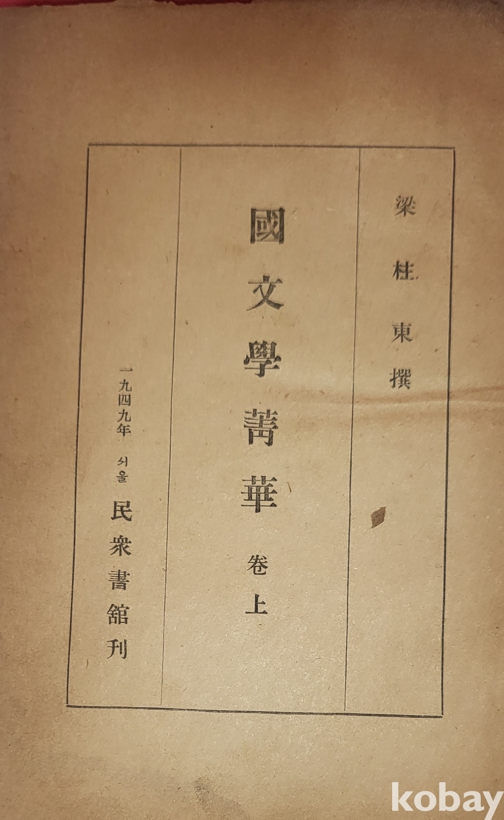 1949년 발행된 양주동(梁柱東) 국문학정화(國文學精華) 상권입니다,