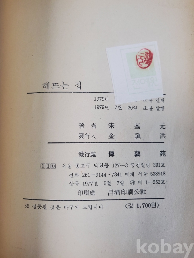 1. 해 뜨는 집, 송기원, 전예원, 1979년, 287쪽, 상태 상, 사진 참조
