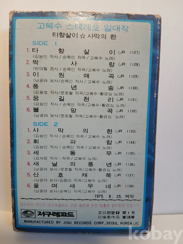 가요테이프 고복수 걸작집 타향살이 사막의 한 등 16곡