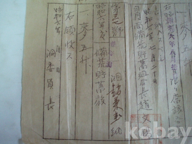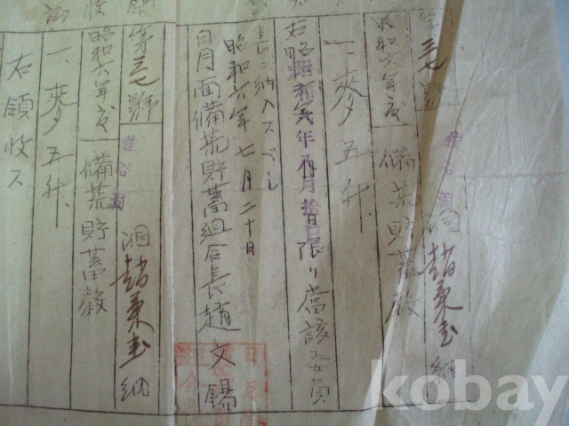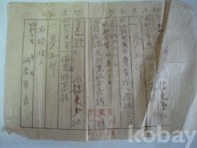 맥(麥, 보리) - 납임고지서, 영수증 (소화6년, 일월면 비황저축조합)