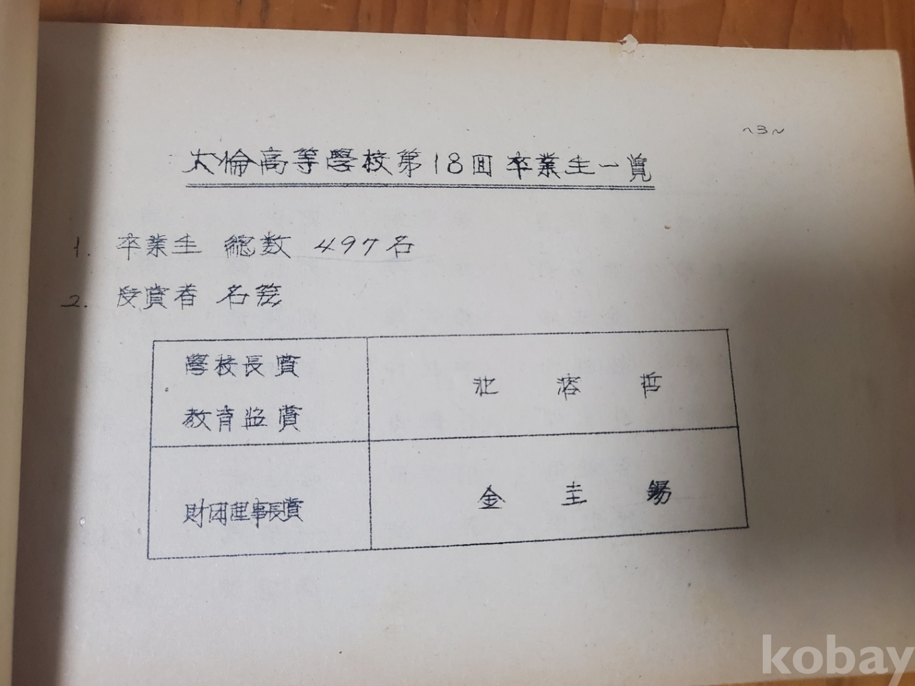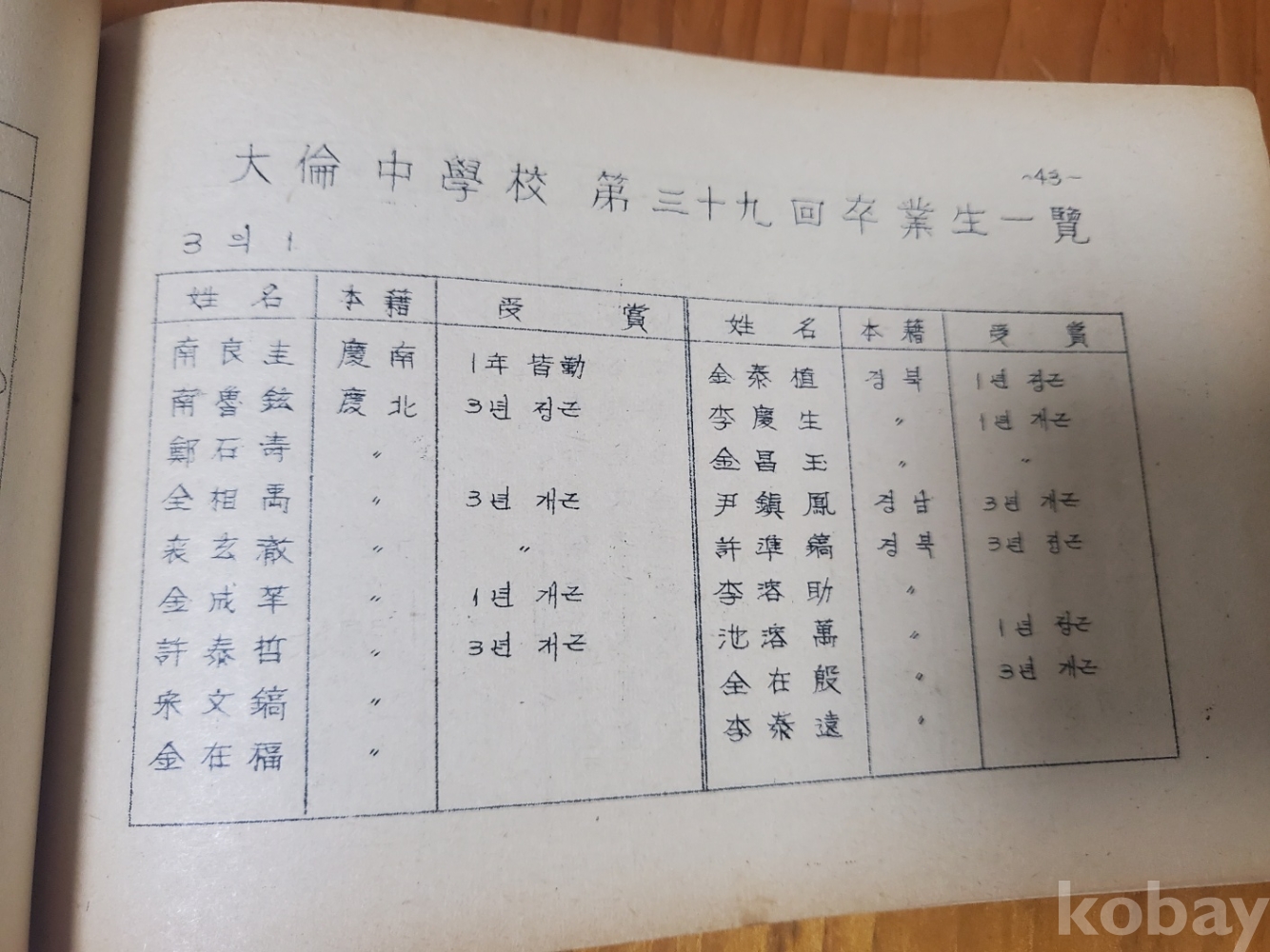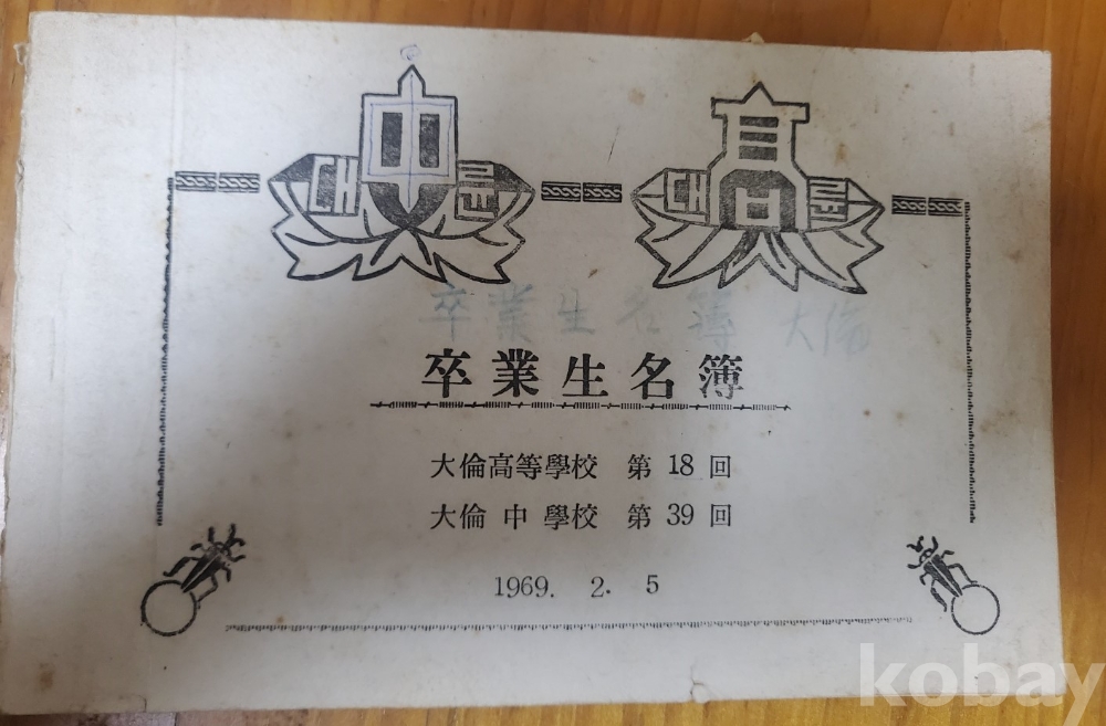 1. 졸업 생명부 - 대륜고등학교 제18회, 대륜중학교 제39회, 1969년, 92쪽, 상태 상, 사진 참조