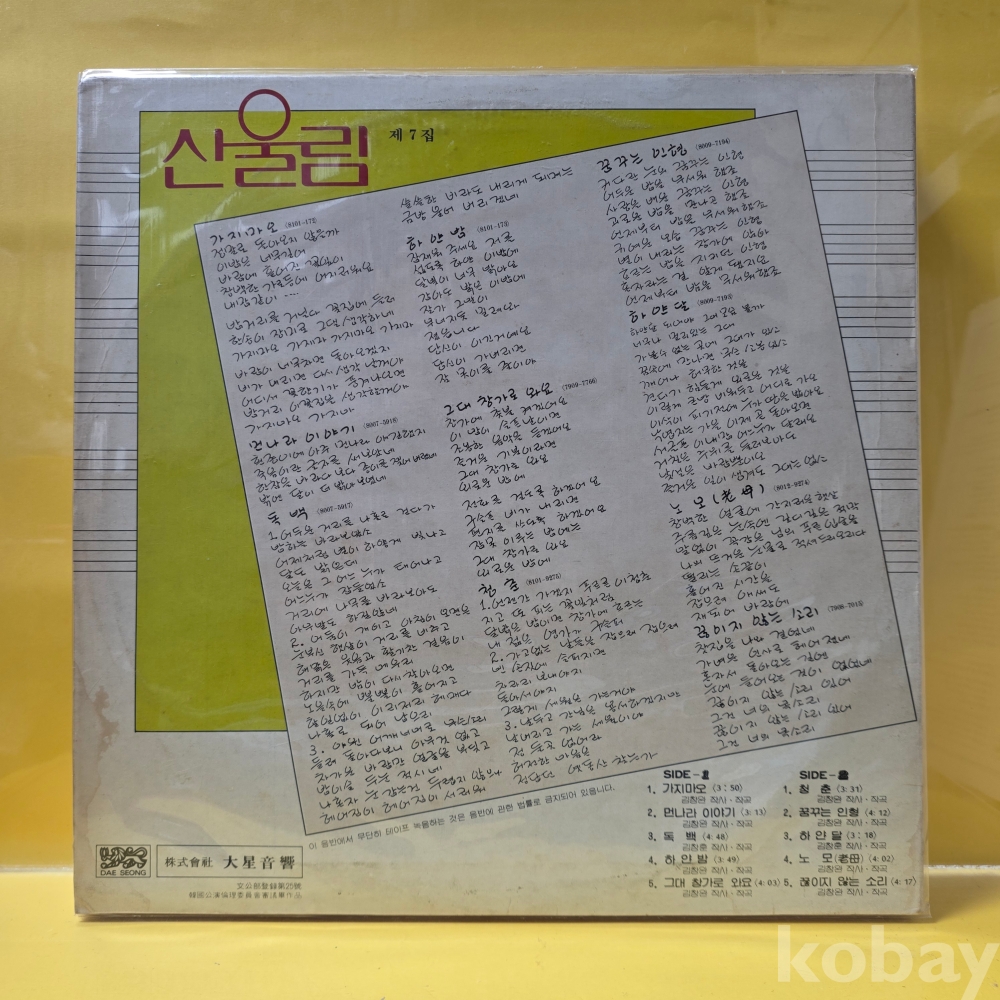 | 자켓상태 | EX : 약간의 마모, 모서리 찢김 존재 | 음반상태 | EX : 재생에 영향 없는 가벼운 기스 존재 | 발매정보 | 초반 | 가사지여부 | 무 |