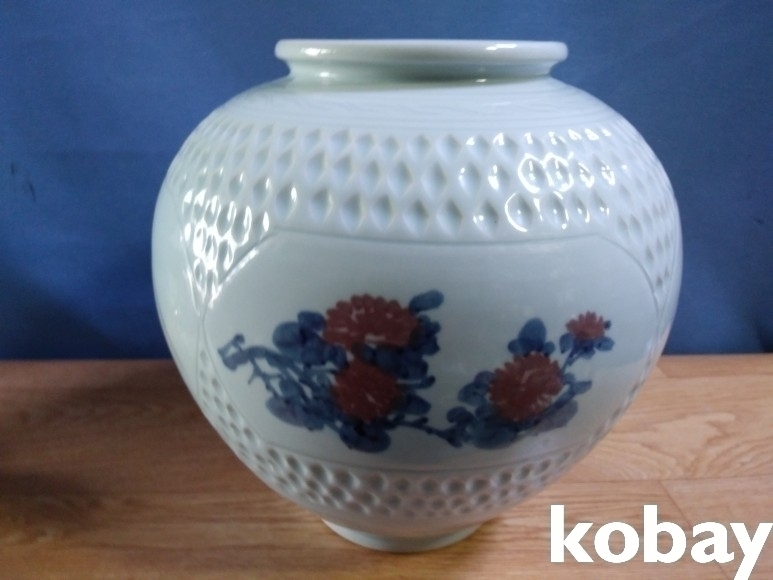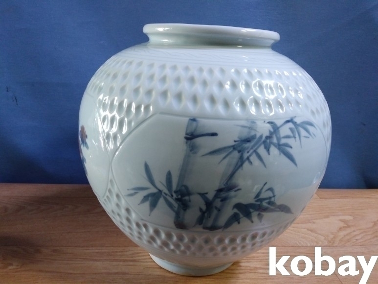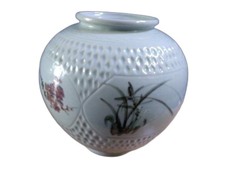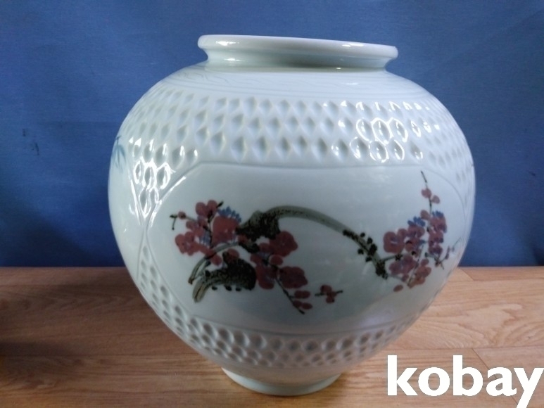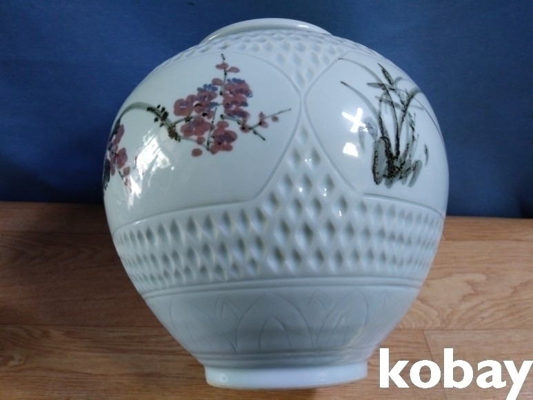사군자를 아름답게 표현한 달 도자기 입니다.