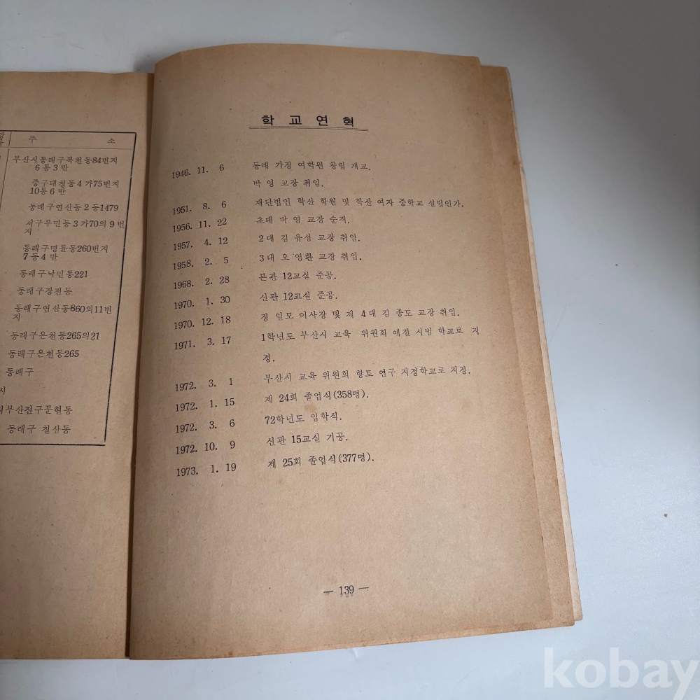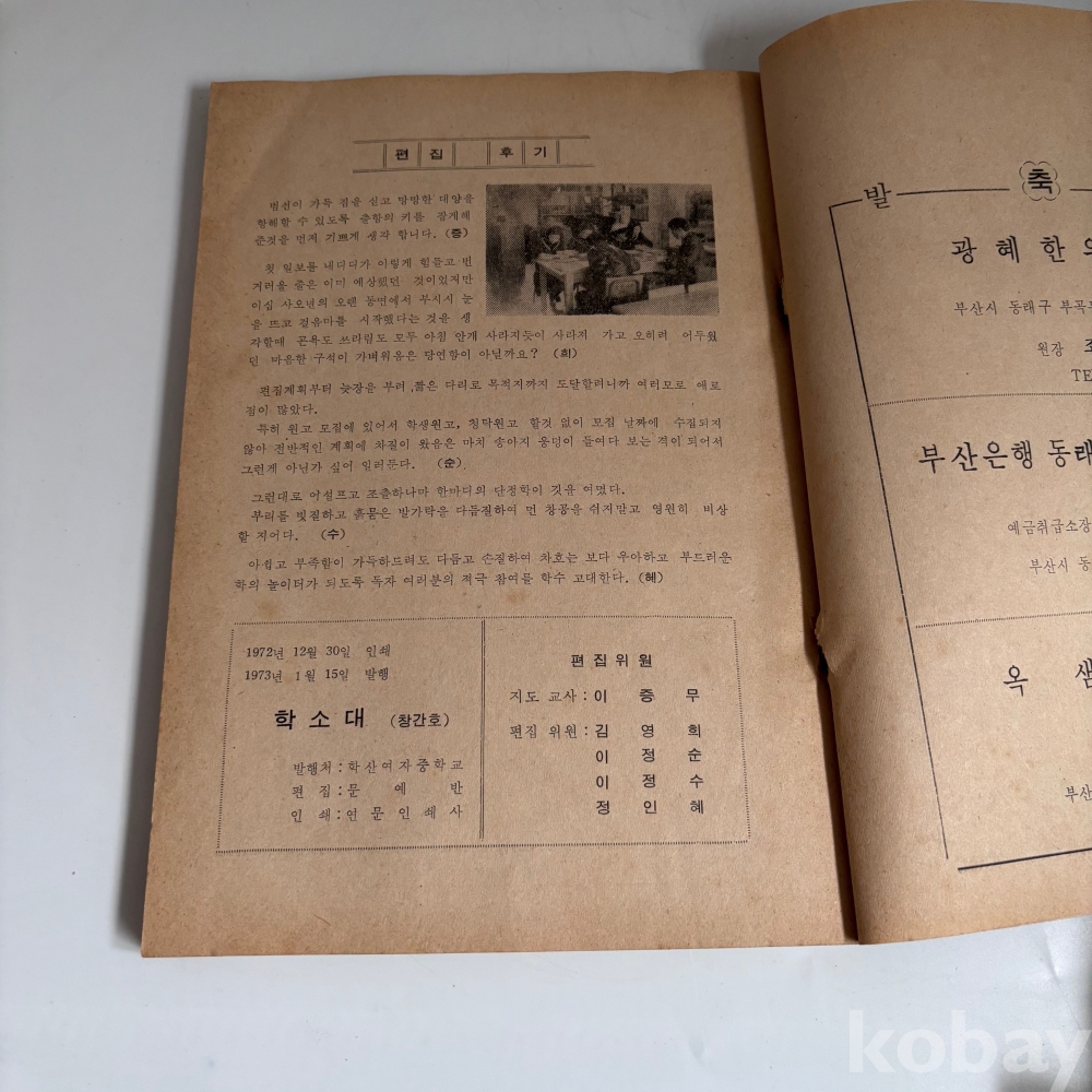 1973년 학산여자중학교 창간호 학예지 학소대 입니다.