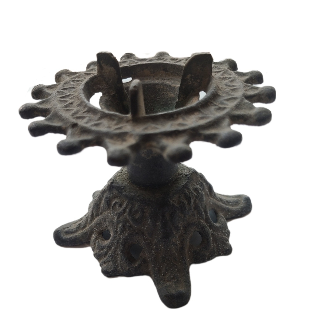 중앙에는 촛불이나 작은 연료를 놓을 수 있는 공간이 마련되어 있어, 촛대 또는 향로로도 사용 가능합니다. 하단의 다리 부분은 짐승의 발이나 고대의 문양을 연상시켜 이국적인 분위기를 자아냅니다.