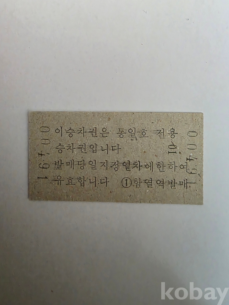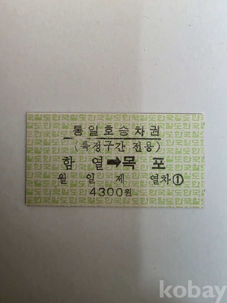 통일호 에드몬슨 승차권입니다