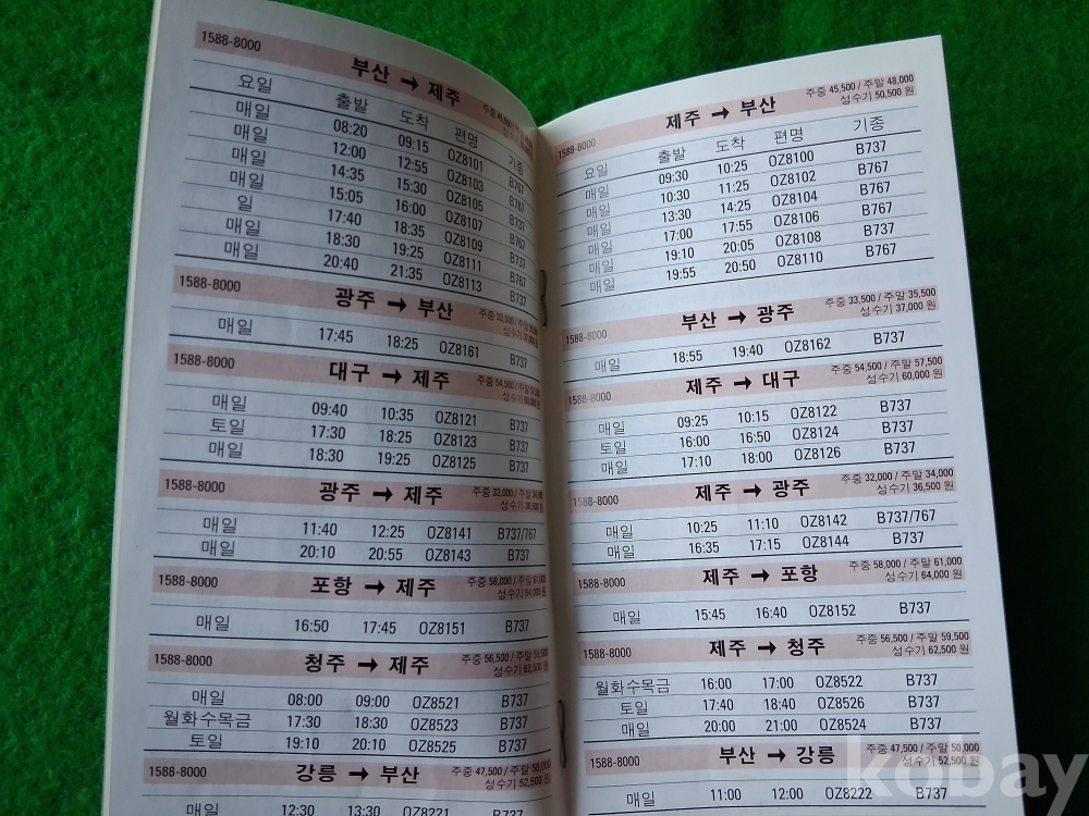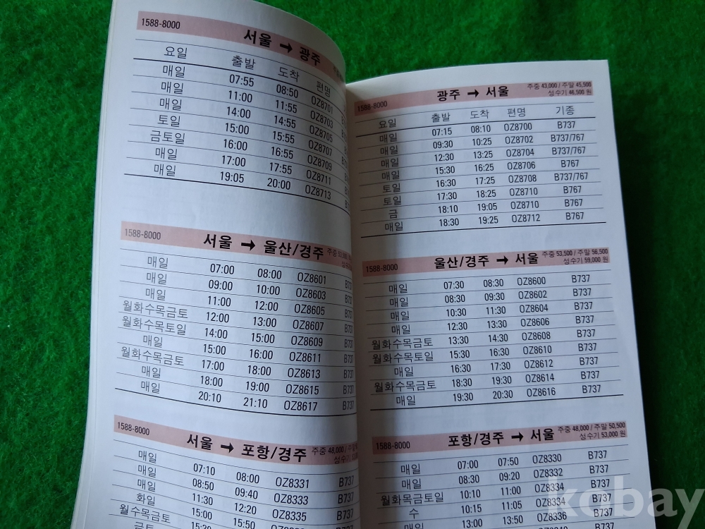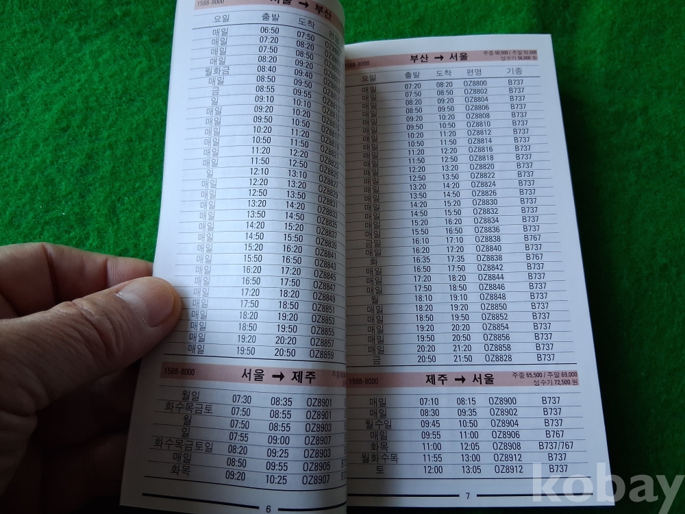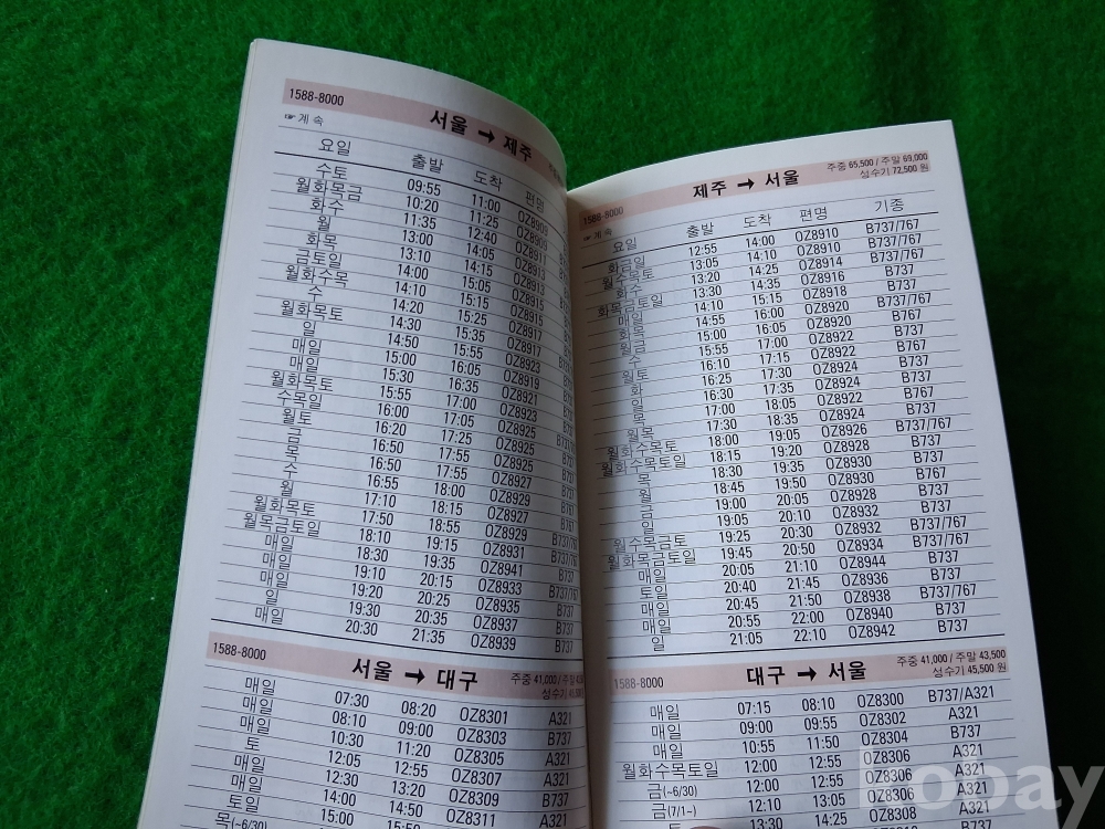 오래전 아시아나항공 운항시간표-2000.6