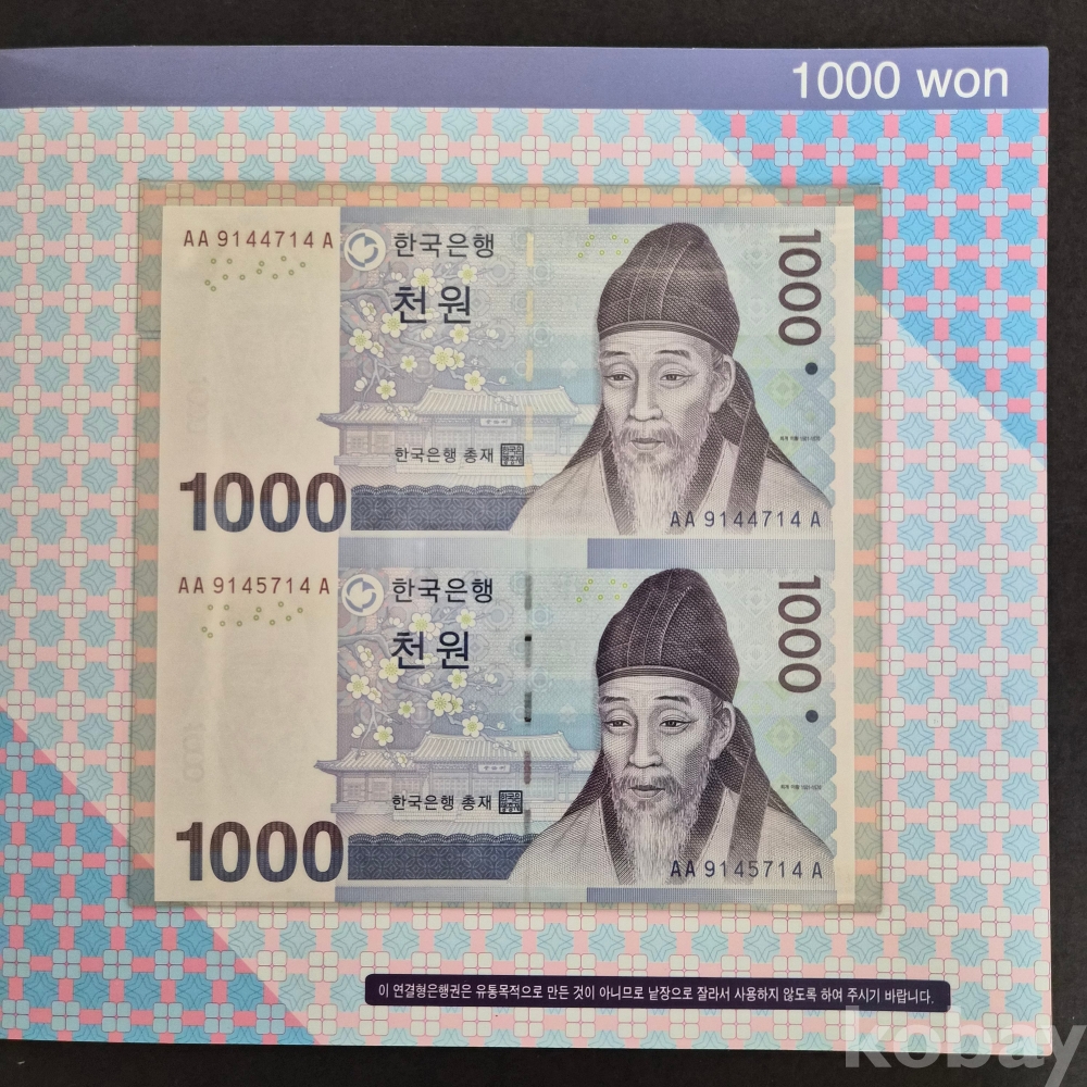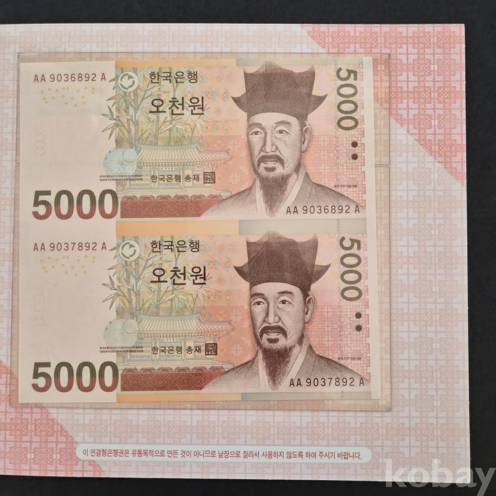 구권 만원과 오천원, 천원 2연결권 초판 3종 일괄 이며