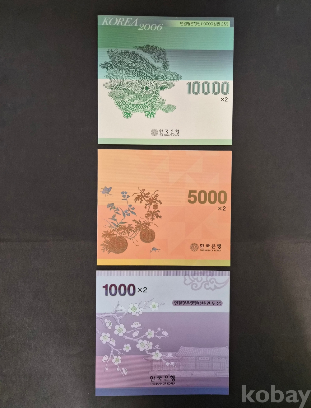 [근대사 화폐 기획전] 구권 만원과 오천원, 천원 2연결권 초판 3종 일괄