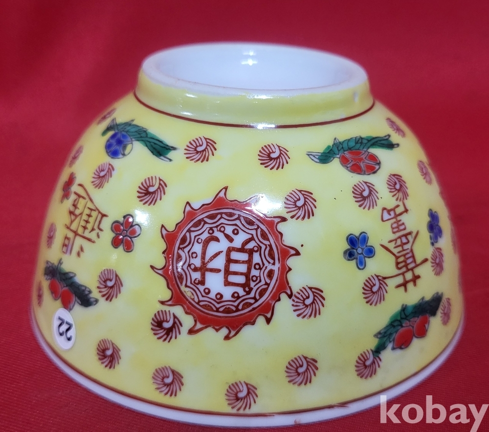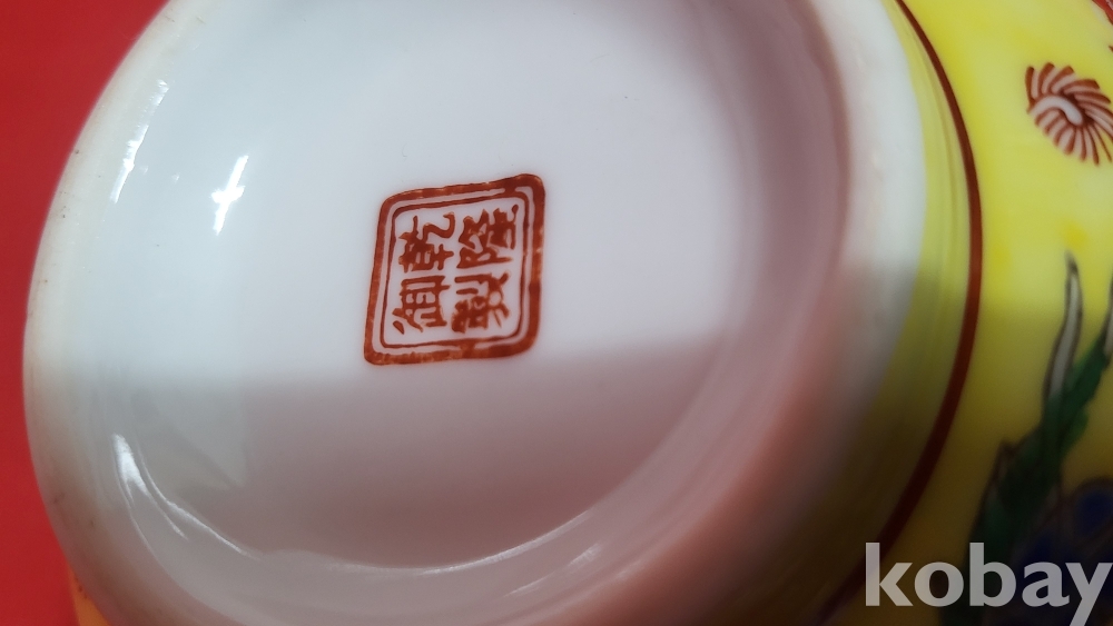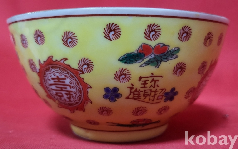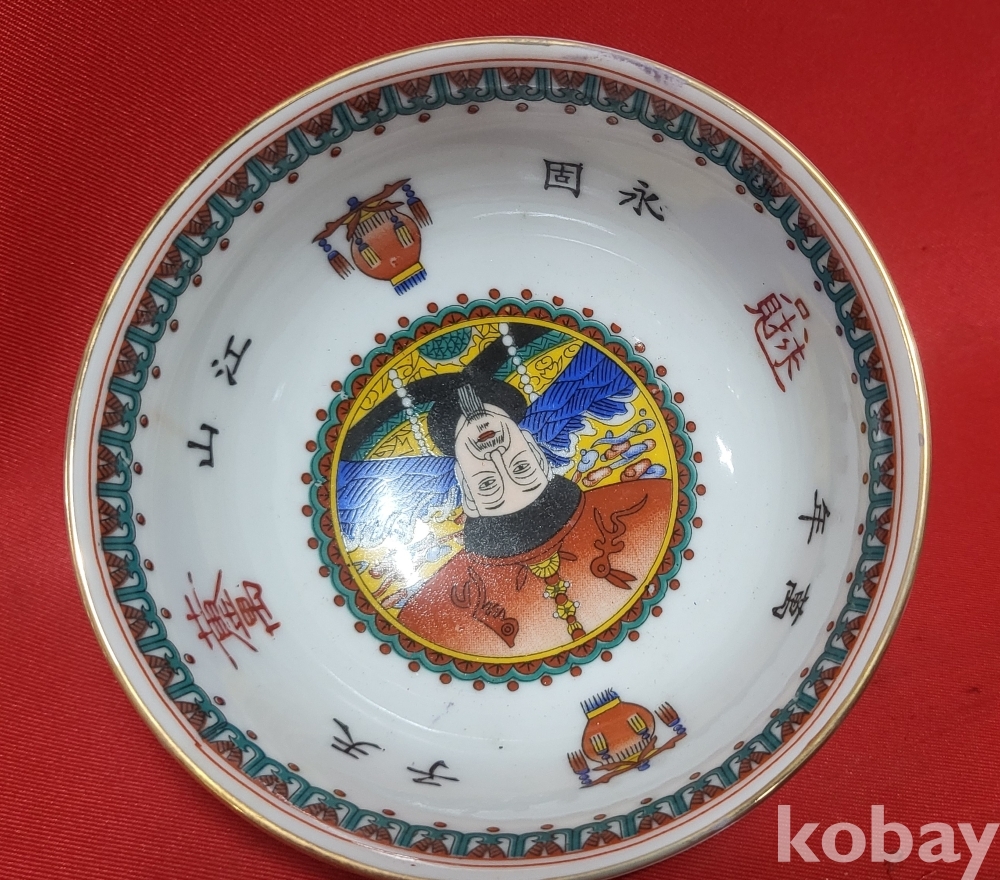 건륭어제(乾隆御帝) 관지 보이는 황제(皇帝) 와 문자(文字)문양 분채 미사용 다완(茶碗) 입니다,