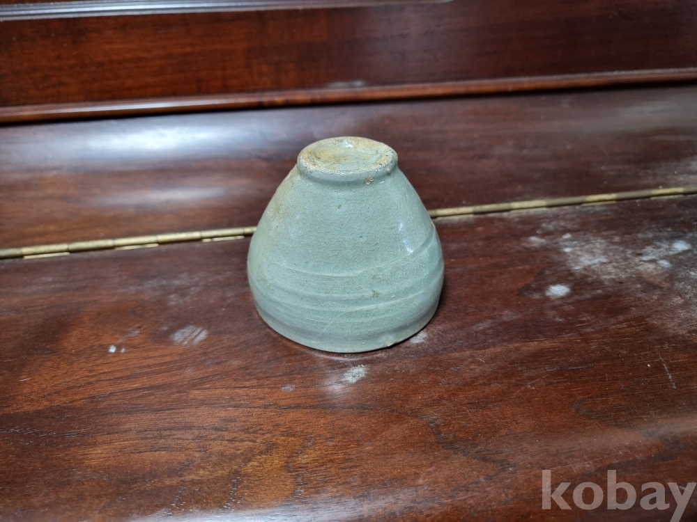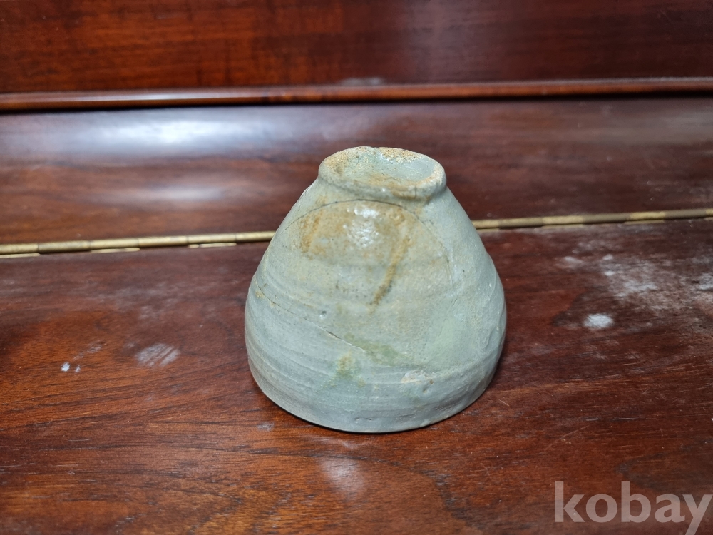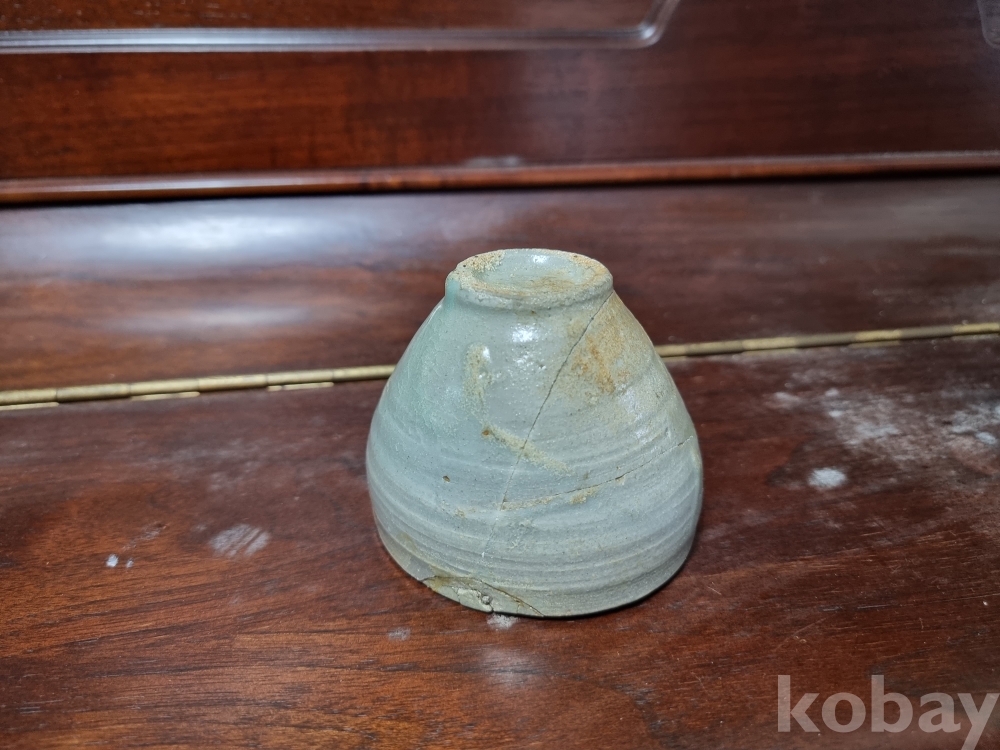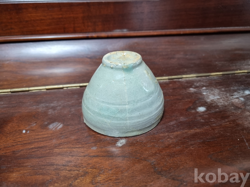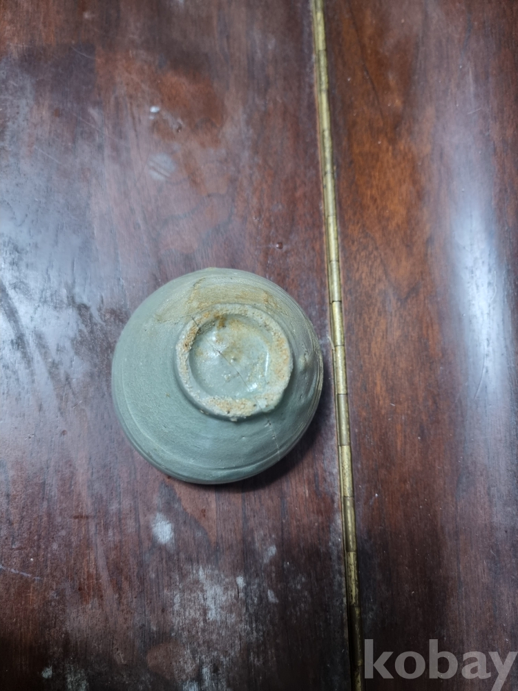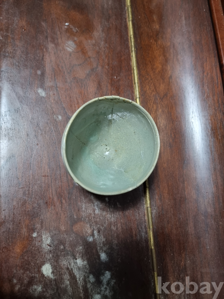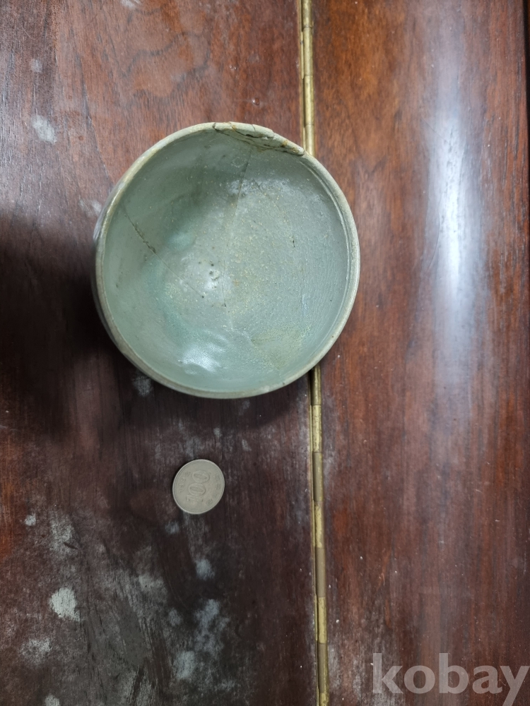 고려청자 잔입니다. 크기 비교를 위해 100원을 옆에 두었습니다. 미감정품이나 의심의 여지 없는 진품으로 보여집니다. 제살붙임 수리와 구연부 튐이 존재하며 경미한 산화가 존재합니다. 온전했다면 값이 많이 나갔겠지만 아쉽게도 수리가 많은 기물이라 저렴하게 경매에 올리니 자료용으로 저렴히 들이시는것도 괜찮으리라 생각되오며 즐거운 경매입찰 되시기 바랍니다.