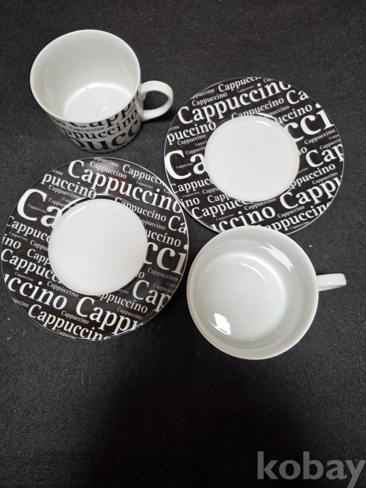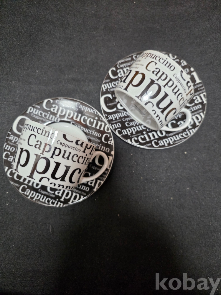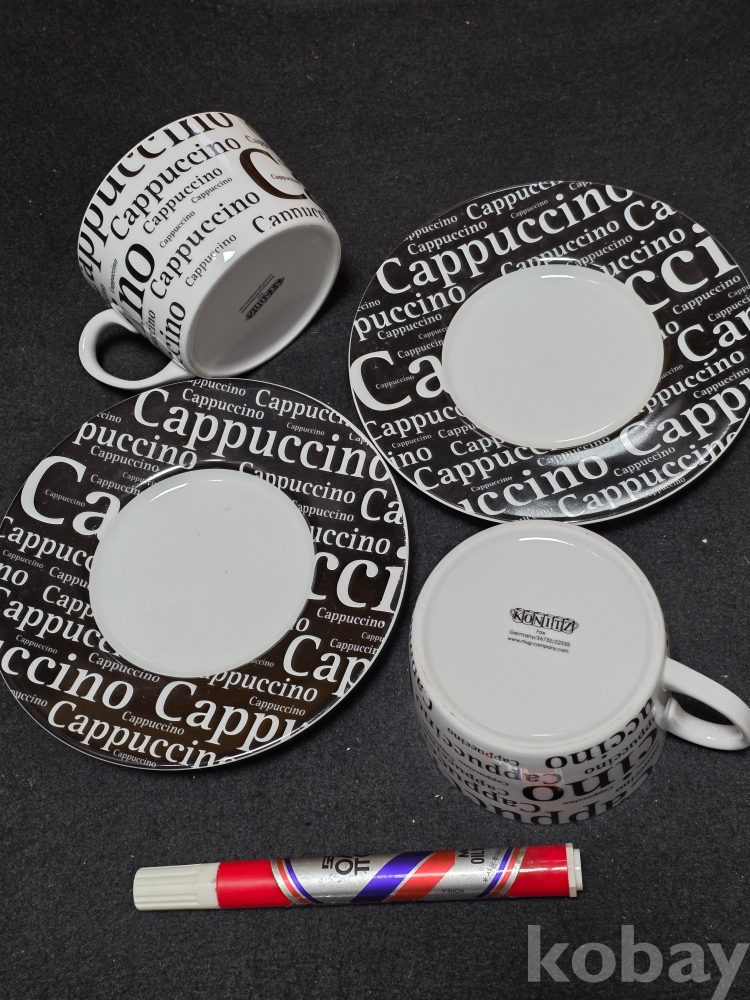 (((빈티지커피잔/도자기커피잔))) 오래전 디자인이 멋진 Cappuccino 커플 도자기커피잔 & 잔받침 (KONITZ/GERMANY)