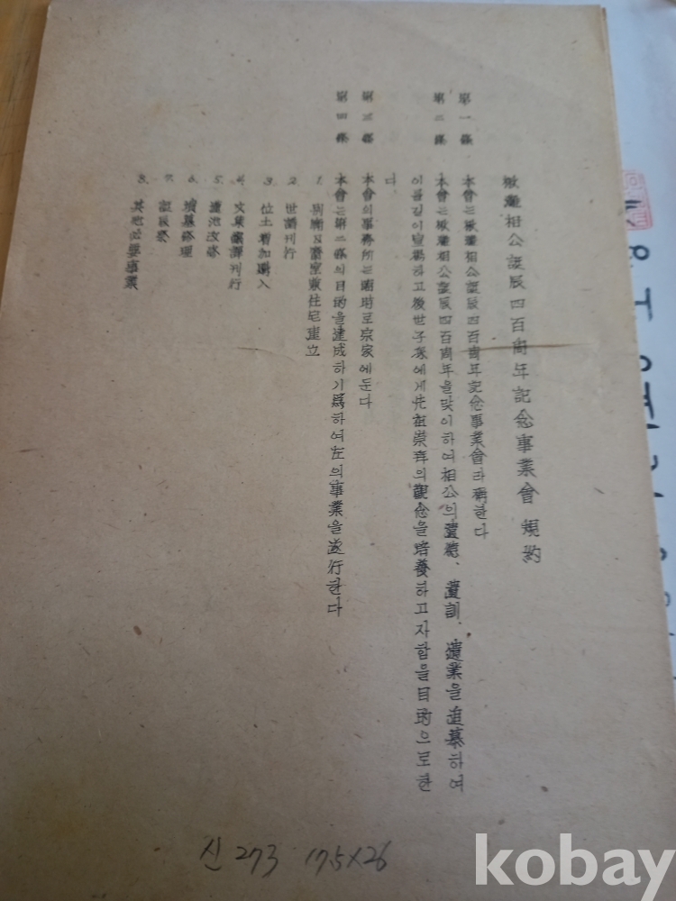 신 273) 추난상공탄신 400주년기념사업회 규약