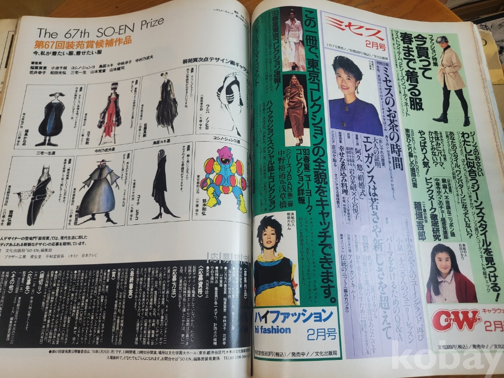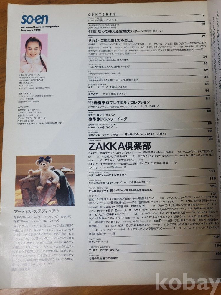 1. 장원(裝苑, SOEN) 2월호(제48권 제2호), 문화출판국, 1993년, 196쪽, 일본판, 표지모델 테라다 미츠키, 상태 상, 사진 참조