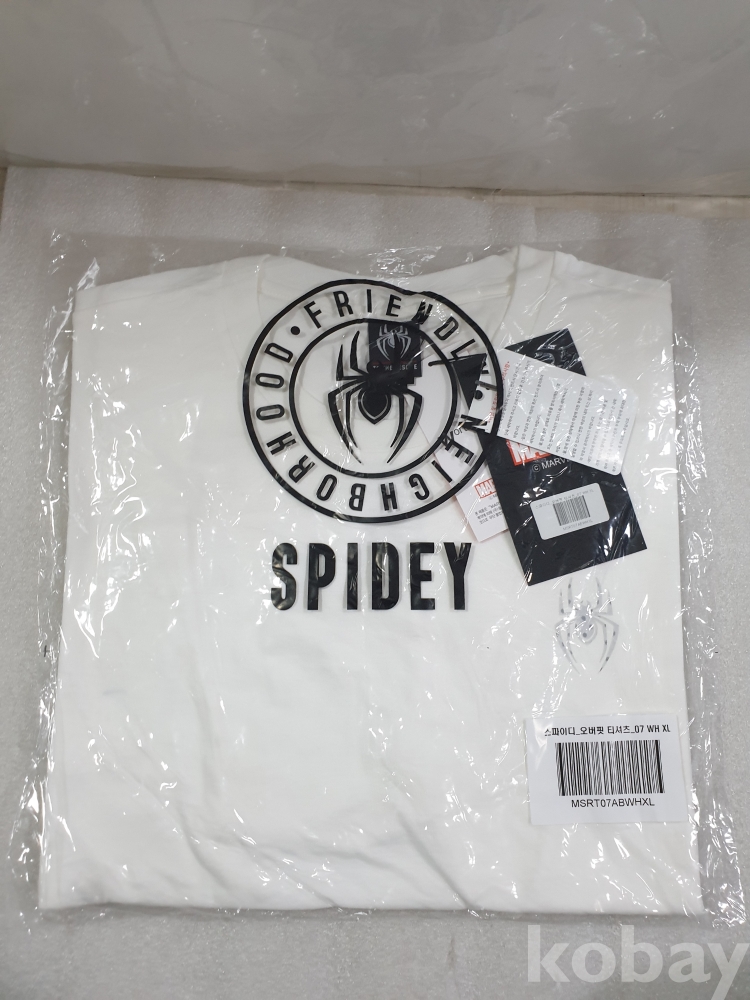 {천원경매}3-1347 스파이디 오버핏 티셔츠 흰색 XL