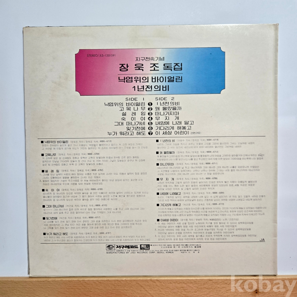 중고 LP인 관계로 취소나 반품도 불가합니다.