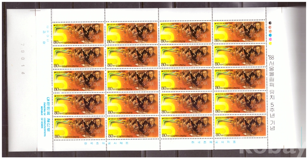 (서울올림픽) 1986.9.30 '88 서울올림픽 유치 5주년 sheet of 20 MNH