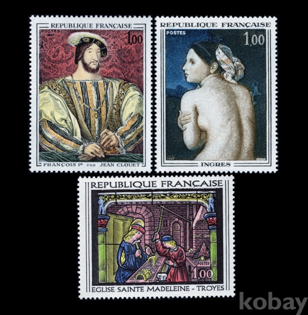 프랑스) 1967년 명화, 프랑수아 1세(장 클루에作),목욕하는 여인(장 오귀스트 도미니크 앵그르作),금세공사 聖엘로이의 작업모습(스테인드 글라스,트루아의 聖마들렌 성당)
