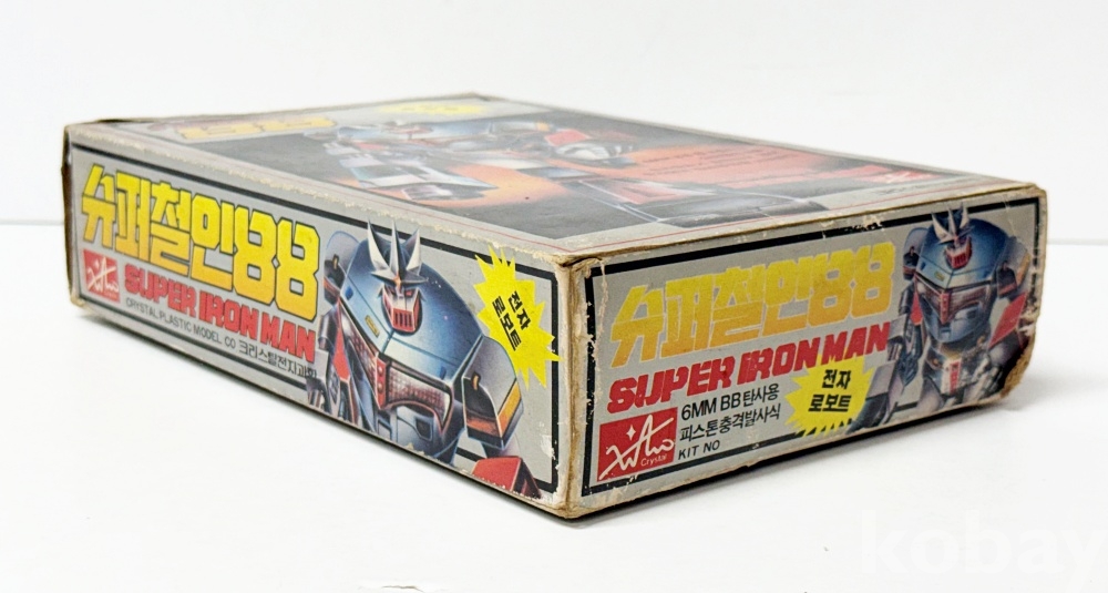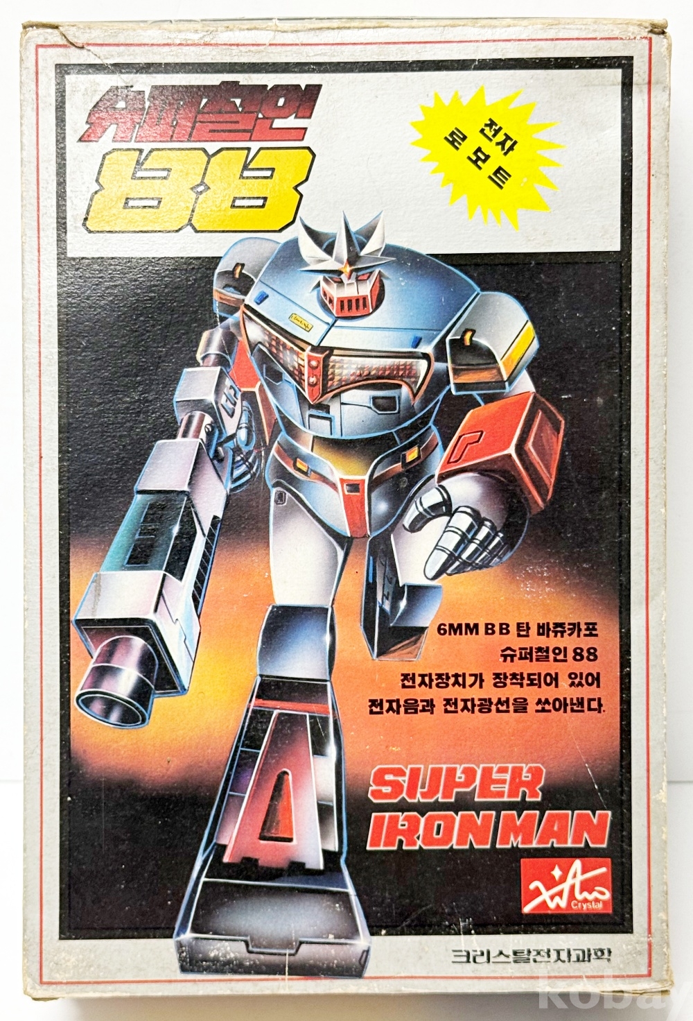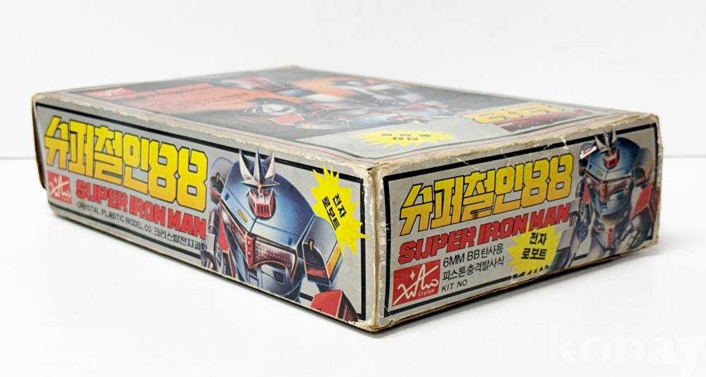 상품설명 | 크리스탈 전자과학에서 발매한 고전 완구 '슈퍼 철인 88'이다. 일본 애니메이션 '사이코아머 고바리안'의 디자인을 바탕으로 제작되었다. 박스 : 18 x 27 cm 본품 : 10 x 23.5 cm | ||