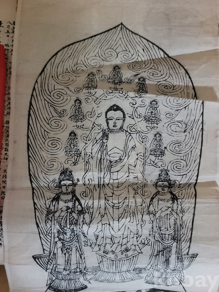 고서.. 대정 8 년 목판 불화 부처 불상도 / 불경 관세음? 탱화 탕카 1919년 근대사 자료