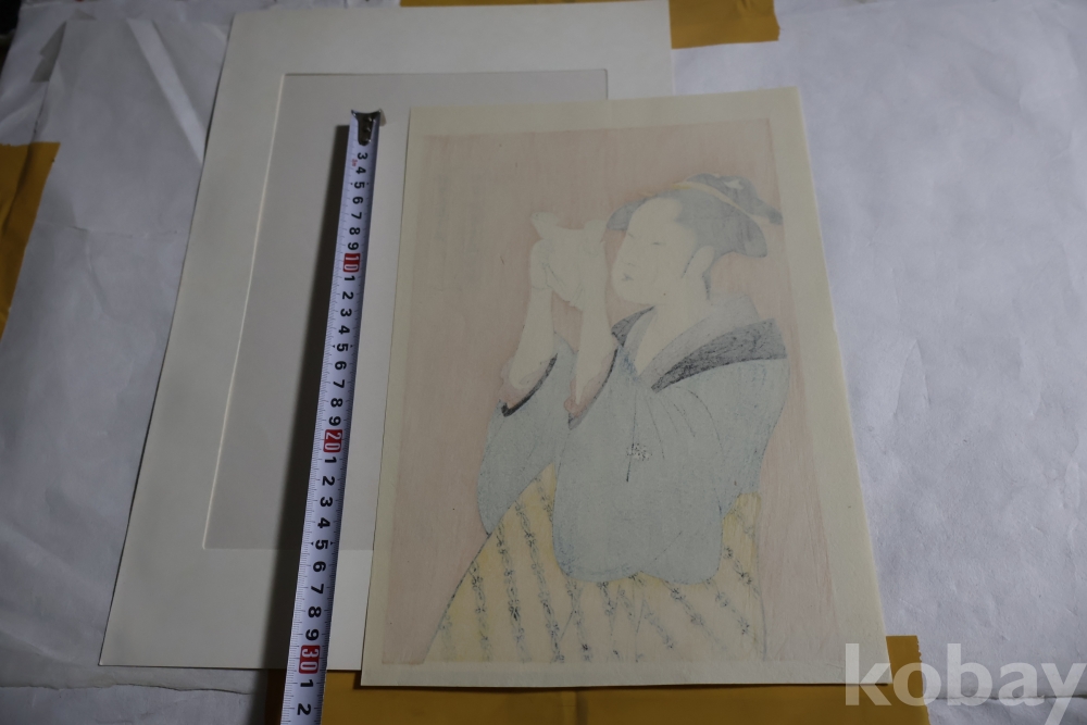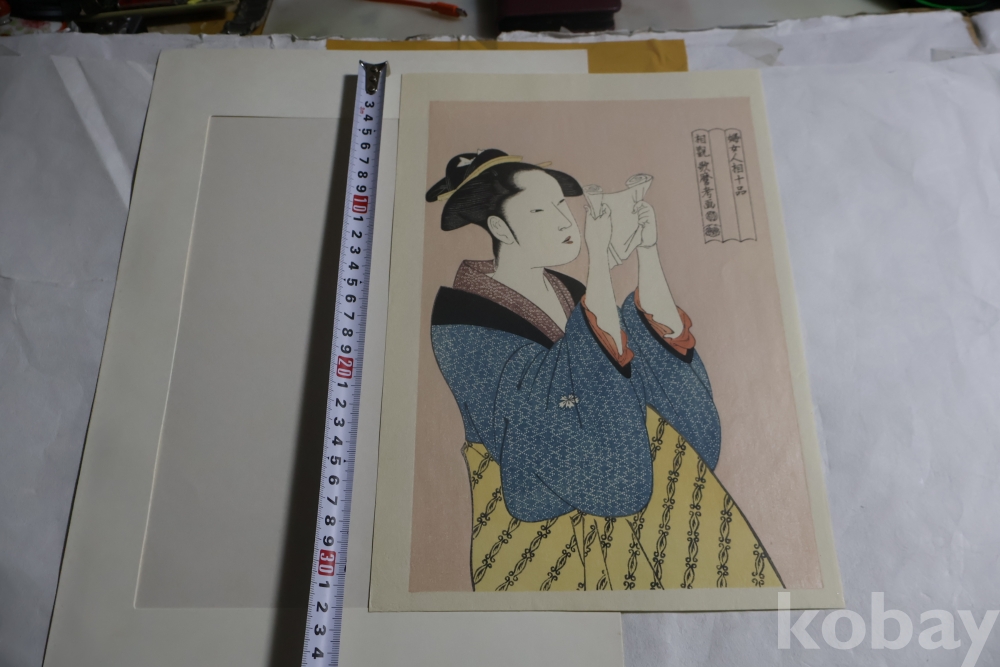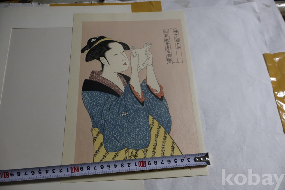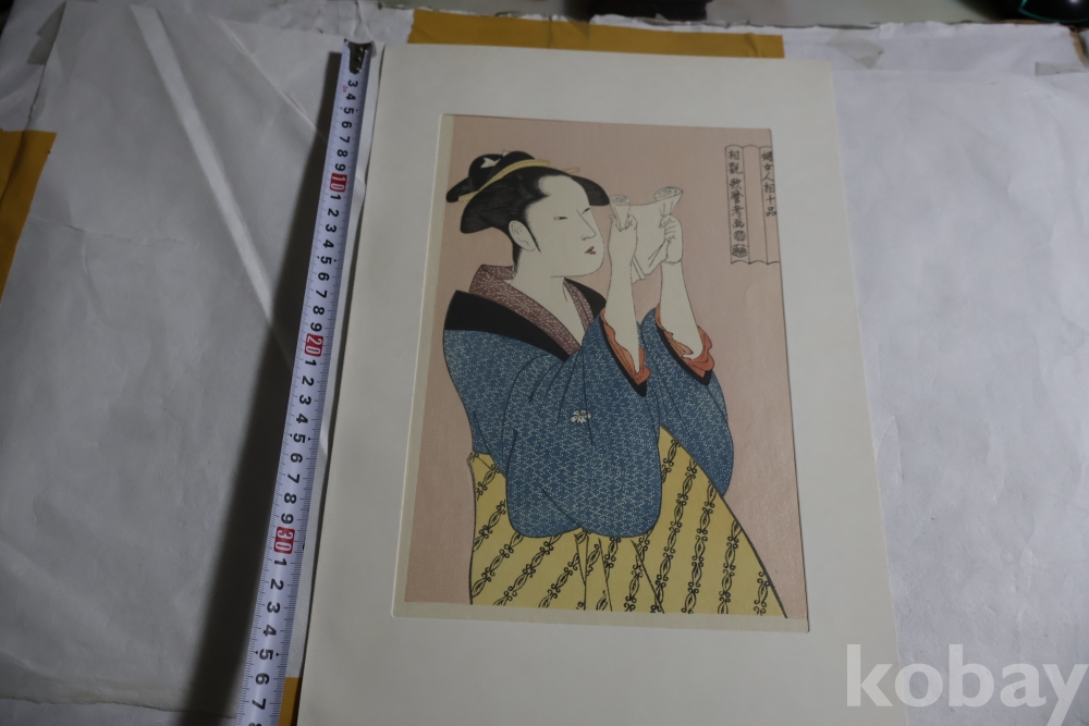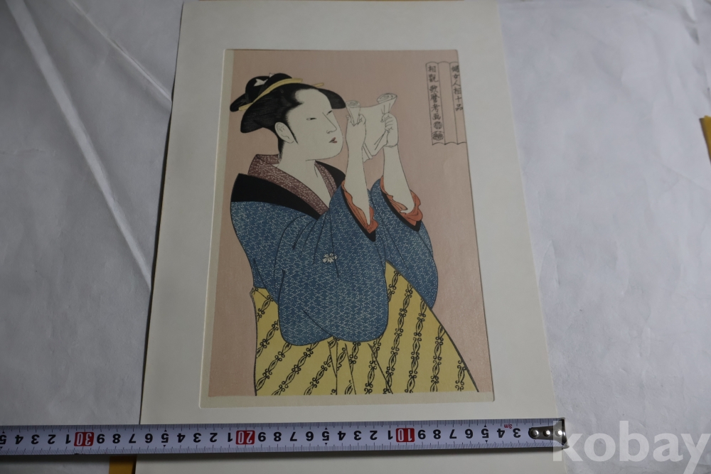 우타마로 목판화 게이샤의 명품 /명화 /편지 읽는 미인/최고급 명작 white 104//0053