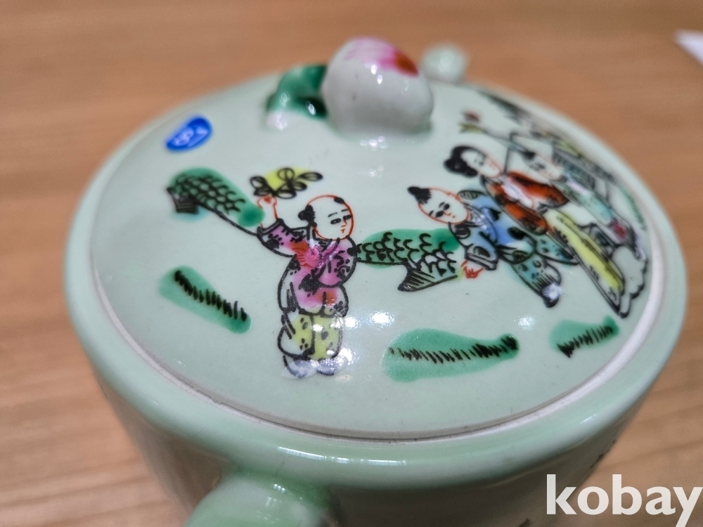 뚜껑 손잡이는 복숭아 모양 입니다.