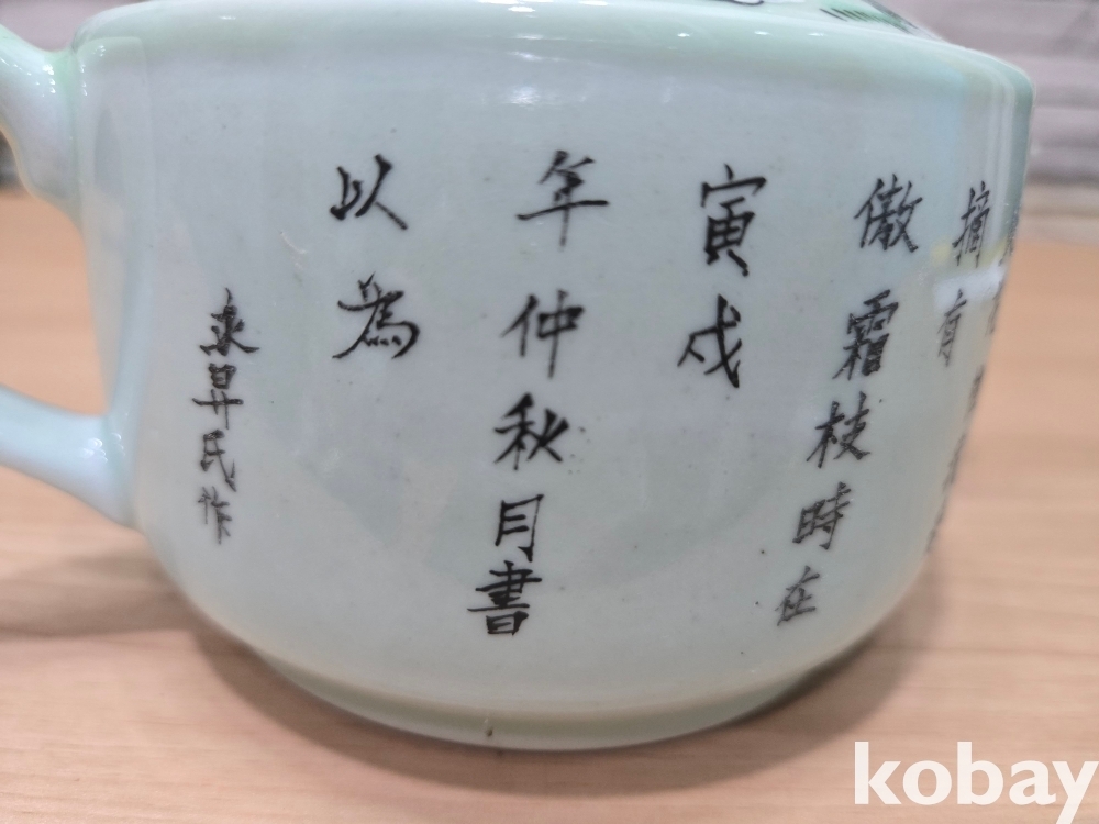 인물, 글씨가 표현된 다완 도자기 입니다.