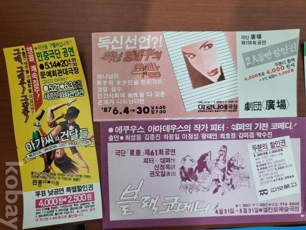 80년대 연극티켓 일괄 사진참고하시고 입찰해주세요 궁금하신부분은 문의해주시면 최대한 성심껏 답장드리겠습니다 우체국택배로 발송드리겠습니다 감사합니다