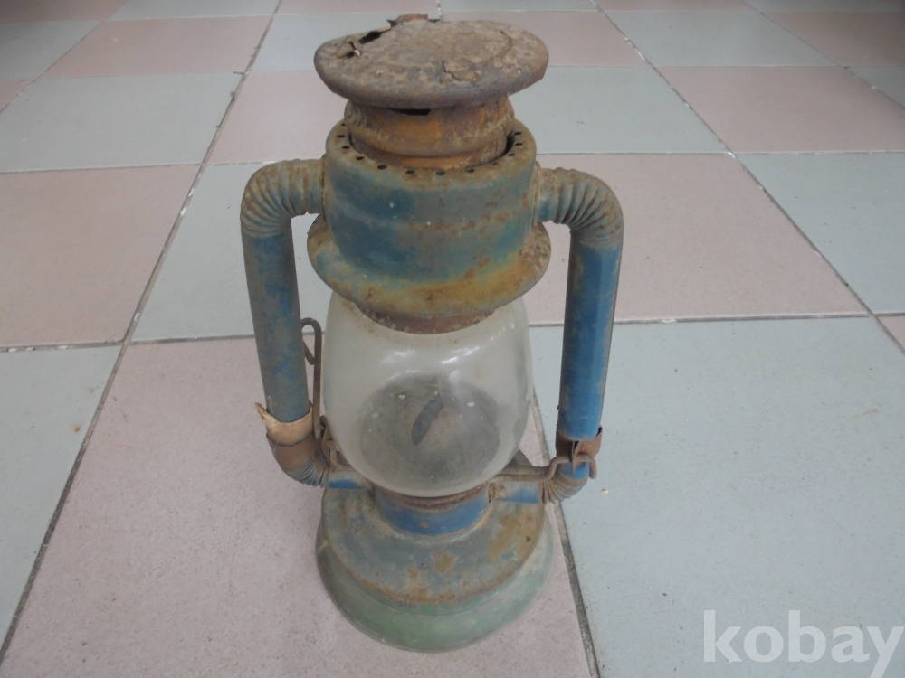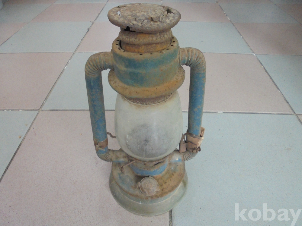 오래되여 먼지등 때물이 일품이이며 호야유리 깨진데없는 거의온전하나 거는 고리끈이 없는 고색의 어둠을 밝히던 남포등