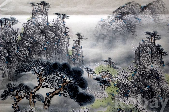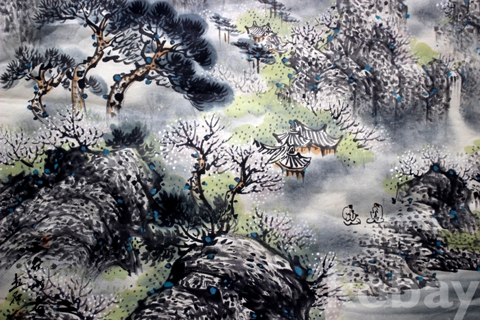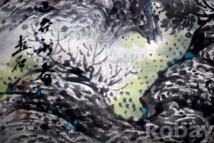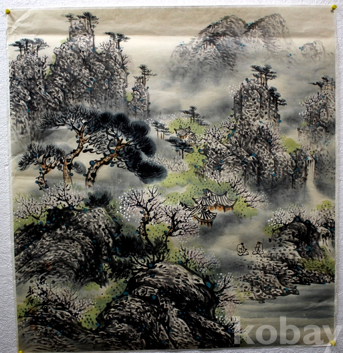 국전입선작가인 起石(기석) 박삼영의 - 복사꽃이 화사하게 만발한 산사의 풍경