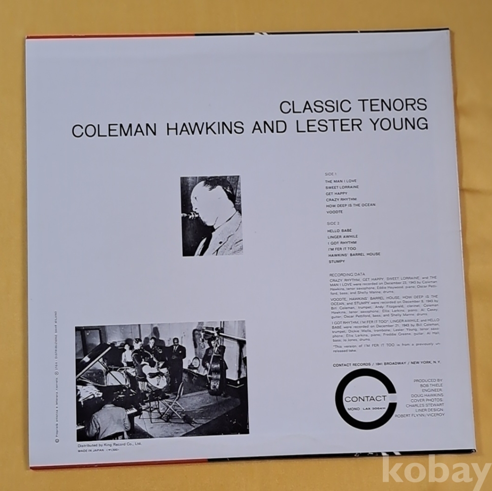 재즈 색소폰 거장 콜맨 호킨스와 레스터 영의 합작 앨범인 'Classic Tenors' LP입니다.