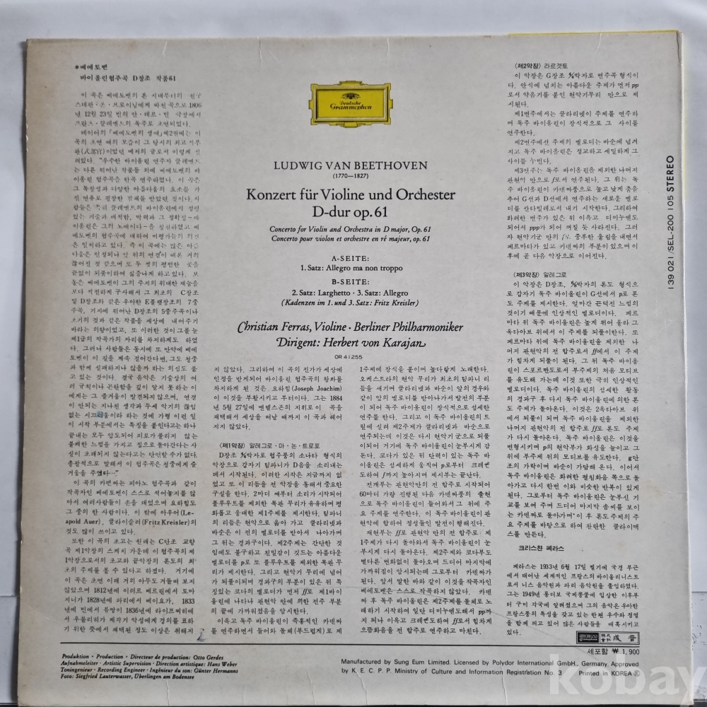 베토벤 Beethoven*, Christian Ferras, Herbert von Karajan, Berliner Philharmoniker – Violin Concerto