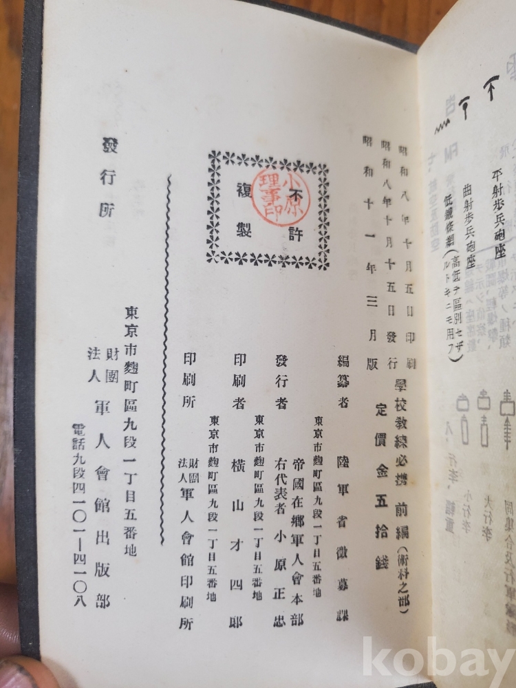1. 학교교련필휴 전편, 육군성징집과 편찬, 군인회관출판부, 1936년, 416쪽, 일본어판, 상태 상, 사진 참조