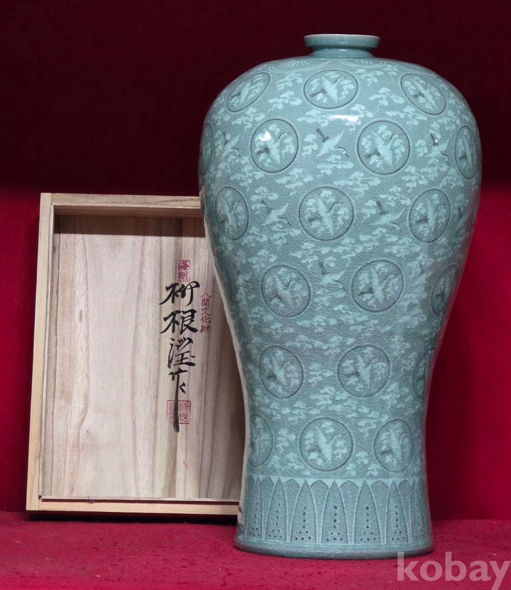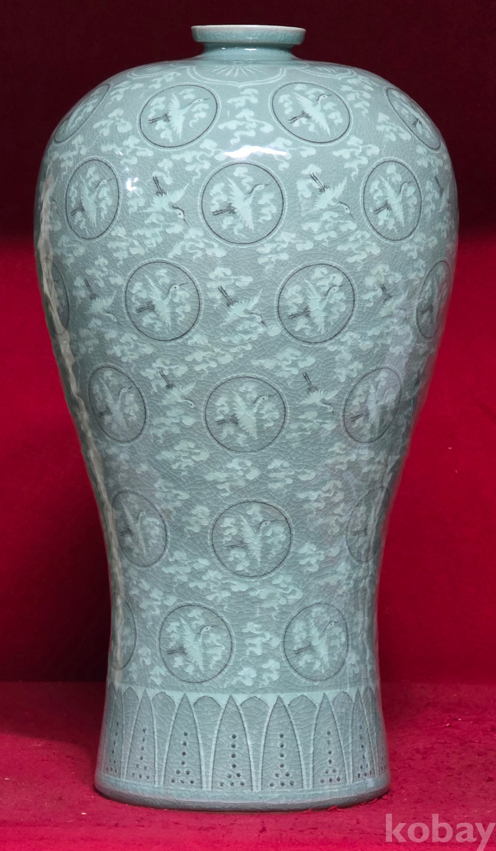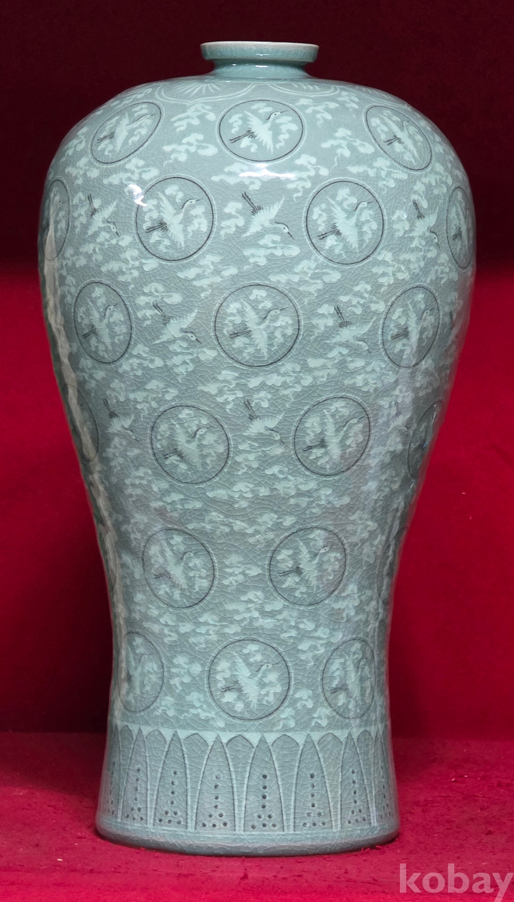 해강 유근형 선생님의 흑백상감 운학문 매병 대형 입니다