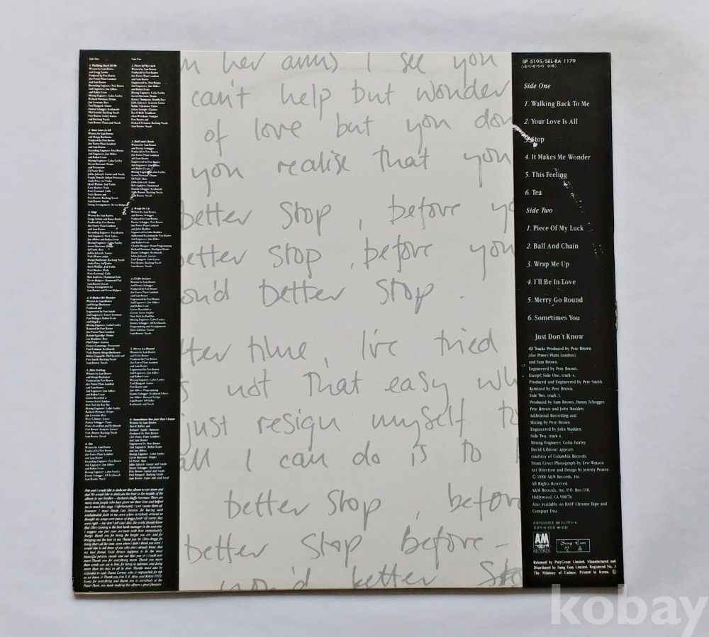음반 상태 : EX, 백화얼룩 많으며, 일부 구간 진한 백화 얼룩, 잡음 있음