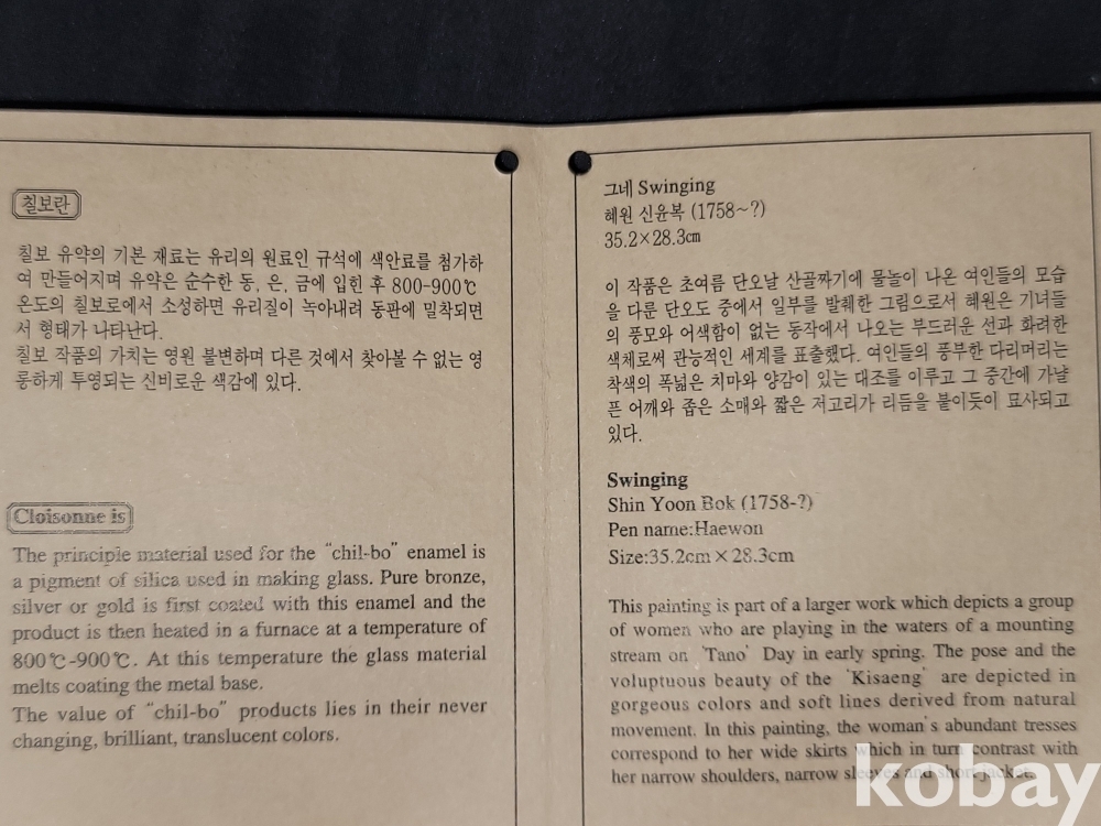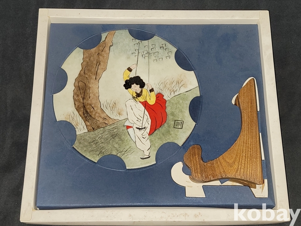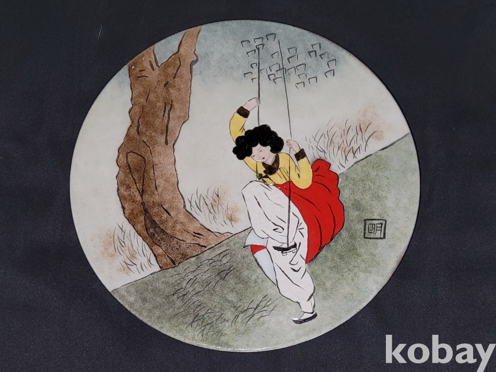 빈티지 혜원 신윤복 그네 그림 칠보 접시 도자기 공예품입니다.