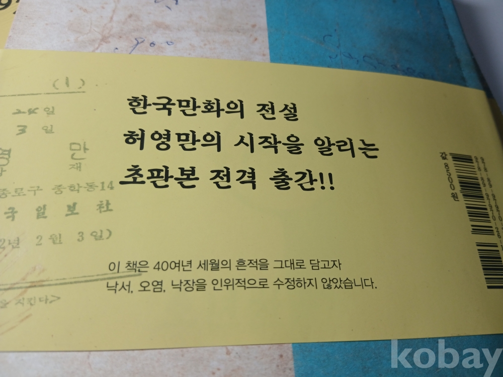 허영만 1970년대 초기작 초판본 재현해 출간