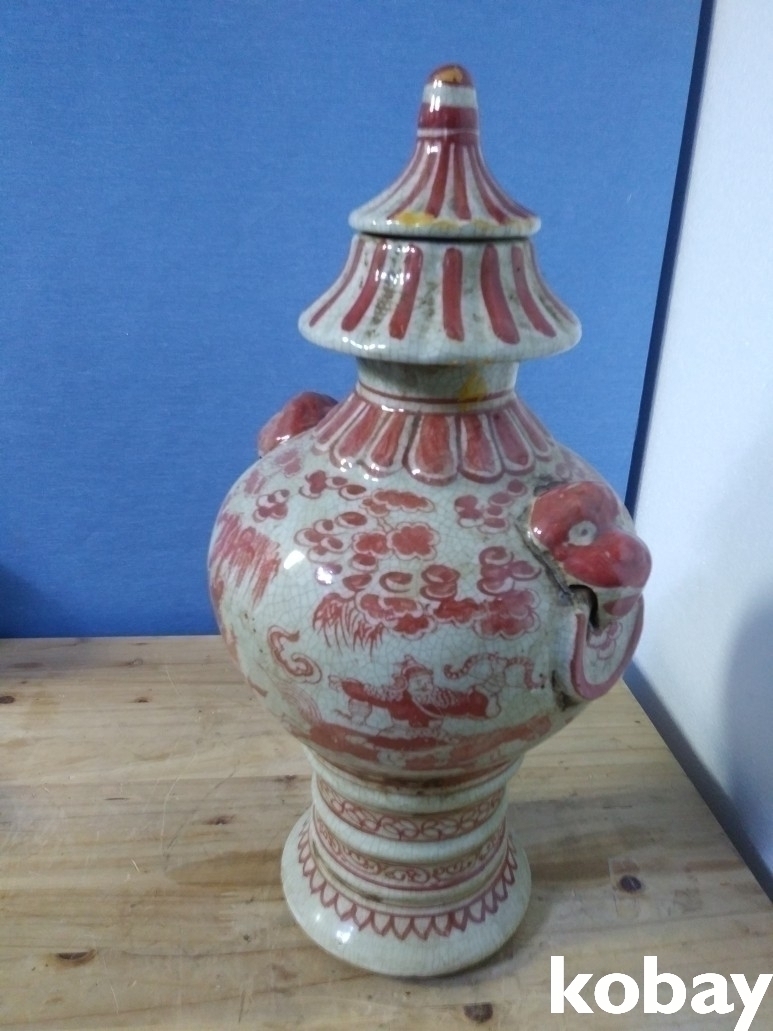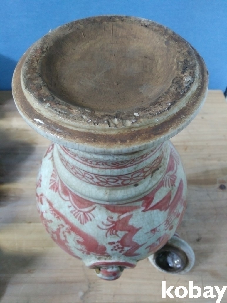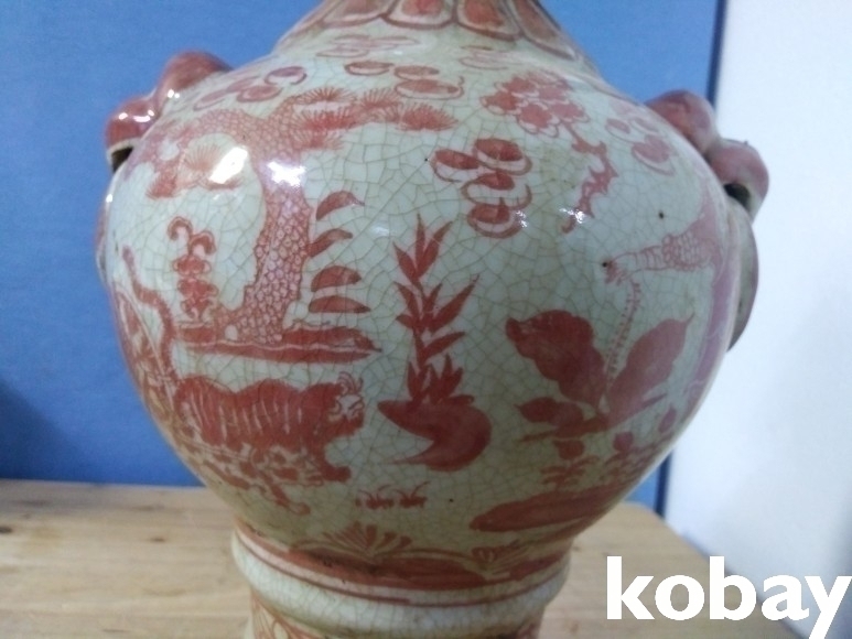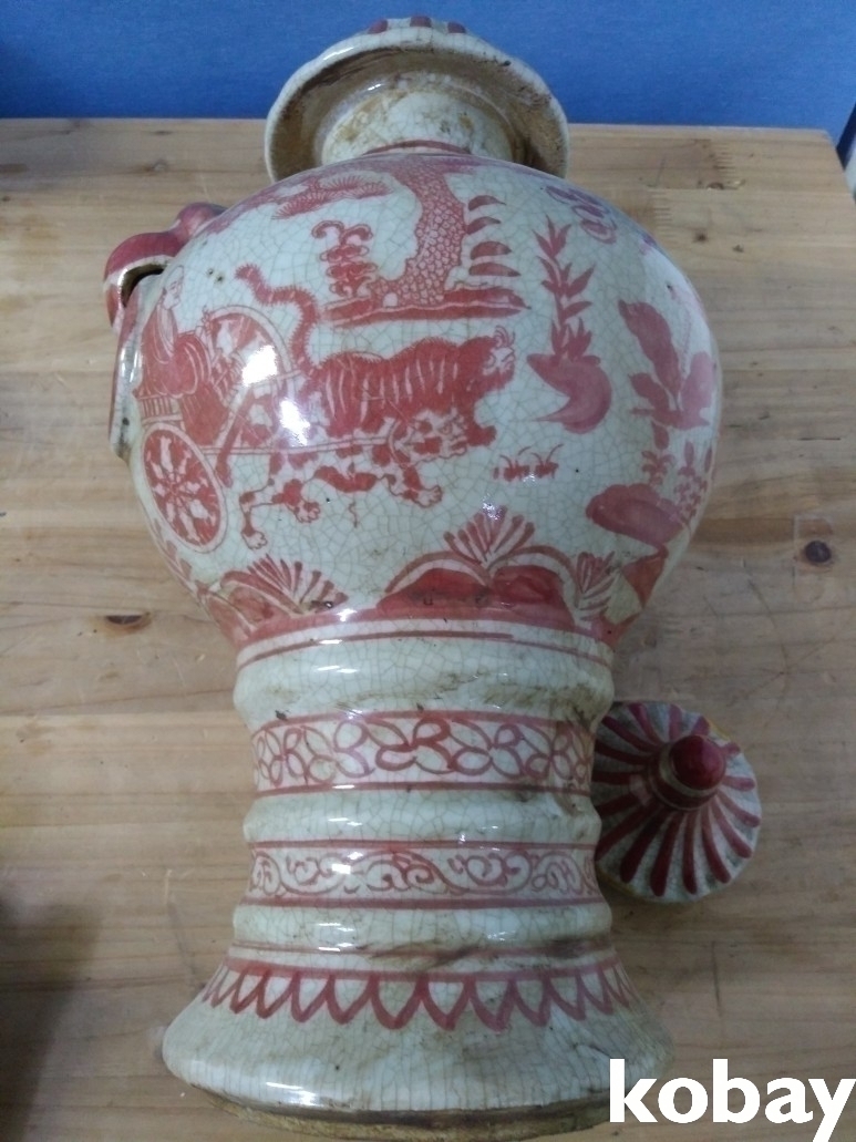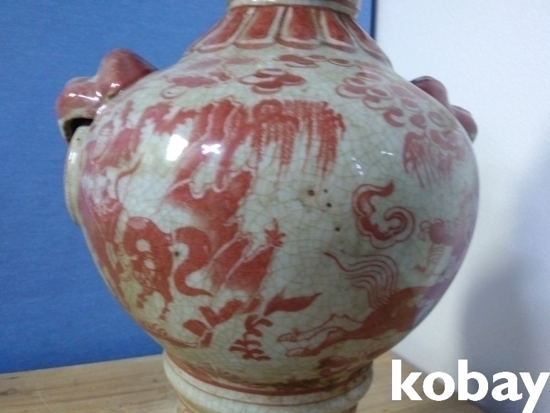 4명의 인물이 사냥하는 모습이 표현된 양이 도자기 입니다.