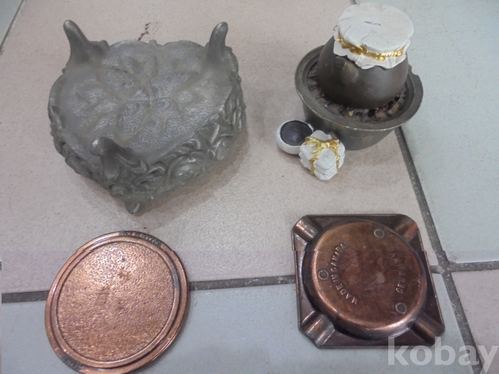 ` 주석늄무로 사랑의하트모형에 옆으로장미화가돌아간 3발그릇과 화로에한약다리는데 한약봉지와 그릇이붙은 재미있는아세사리와